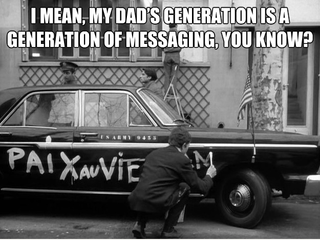 Thus, inspired in part by that project and by West’s announcement here that he is “a new wave artist,” we propose, below, a handful of choice quotes from the rest of the interview overlaid on stills from landmark works of French New Wave cinema. In truth, Kanye might have his sights set more on the Nouvelle Vogue than Nouvelle Vague (the French term for New Wave) — given his apparent obsession with Vogue editor Anna Wintour — but who cares. Feel free to take it from here. Let the internet be the naked island to Kanye’s wave.
