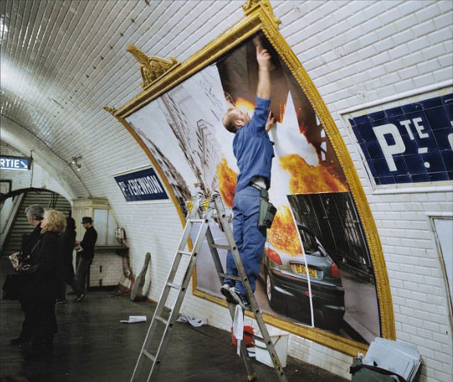 Baudelaire commented on such collective amnesia in an earlier work, Sugar Water (2007), which documents a billposter hired by the artist to cover a billboard in a Paris subway station with a sequence of images showing a car bombing. By slowing down how the event is seen, Baudelaire acutely points out the numbing effect of news media. Many of us mindlessly scroll through publications and social media sites every day to “study” what is happening, only to quickly forget all of it, just like the passersby who ignore the billboard in Sugar Water.