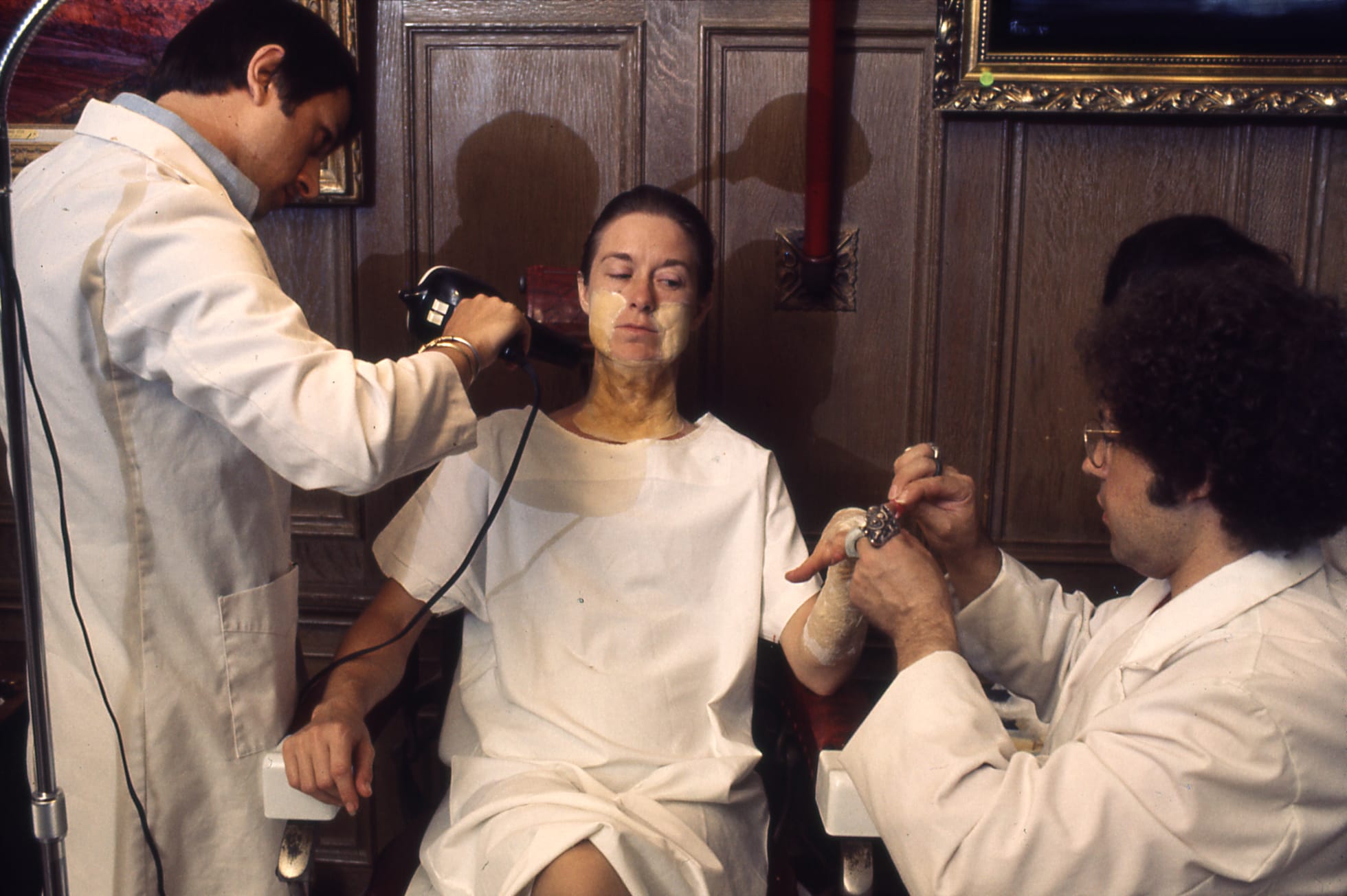Lacy’s passion for bringing people together is a hallmark of her work. In Dinner at Jane’s from 1993 she invited an international roster of feminists to Hull-House in Chicago for dinner and discussion. Watching the documentary of legendary activists like Dolores Huerta, Devaki Jain, Wilma Mankiller, Magdalena Abakanowicz, and Gloria Steinem talk, listen, and eat with gusto is profoundly cheering. At one point in the film someone asks Susan Faludi to speak up, saying she’s too quiet. Faludi responds, quietly, “I write very loudly.”