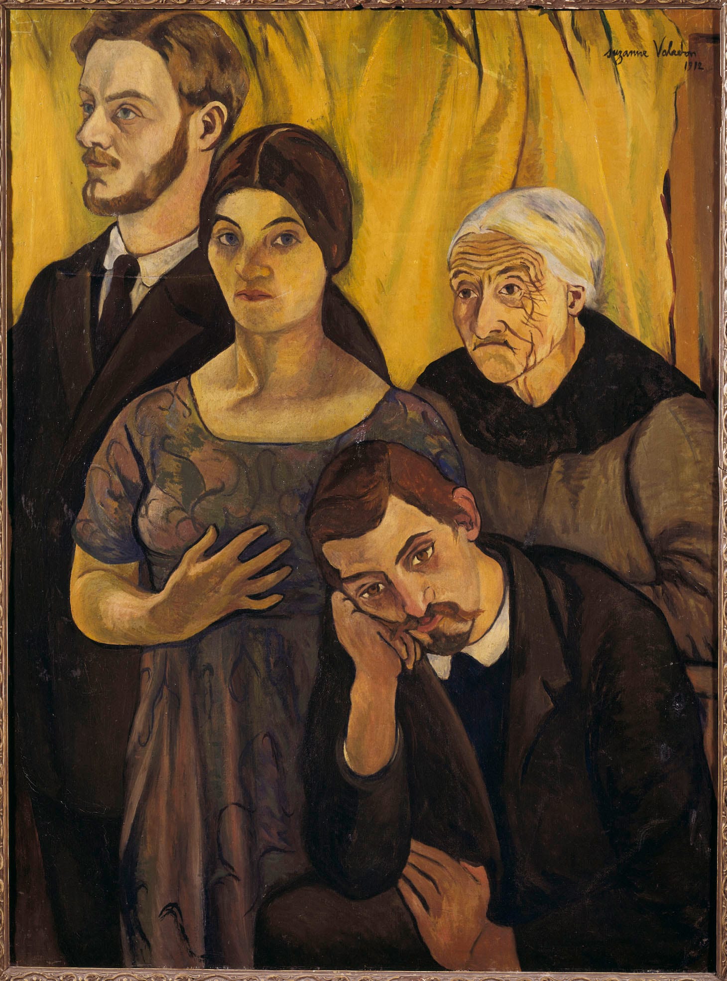 In 1909 Utrillo’s friend, the artist Andre Utter, became Valadon’s lover. He was more than 20 years her junior. Valadon painted her family portrait in 1912 with herself, her mother, her son, and Utter, who had taken on the role of managing Valadon and Utrillo’s careers. She portrays herself as the central figure holding the family together.