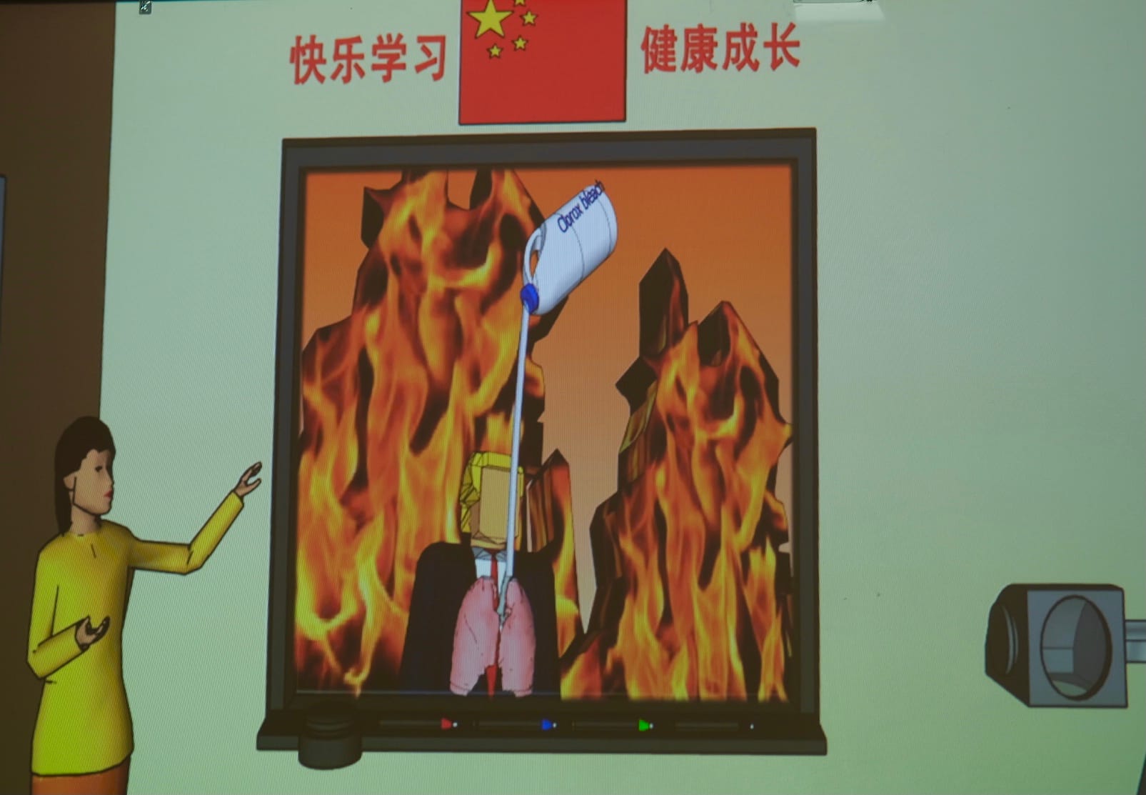 Internet artist XiangLong Li critiques US foreign policy on China through his video Learning Chinese with XiangLong. Instructional and absurdist, it uses highly pixelated block figures to present mock lessons on Chinese idioms. Li interweaves photos of Donald Trump and Mike Pompeo beneath the flag of the Chinese Communist Party, inserting racist news headlines from the pandemic outbreak in early 2020. The elementary nature of the piece emphasizes the skewed understanding of China that US propaganda imposes on its population.