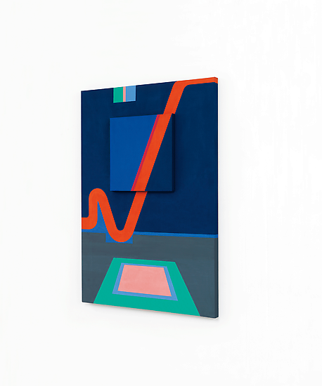 Lukin’s irreverence is what distinguishes his shaped works from those of Frank Stella. Lukin recognizes that constraints are in play at all times, that society in fact needs them in order to survive, while Stella, as Katy Siegel points out in a recent essay, “ doesn’t want the viewer moving around in front of the painting — he controls our apprehension absolutely.” Stella wants to be revered, while Lukin is after something else.