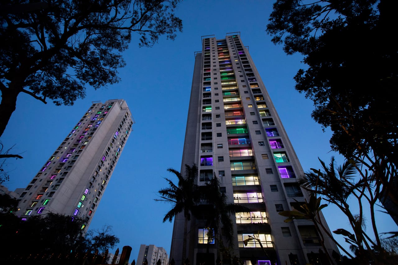 Hundreds of residents of Waterloo estate have installed colorful lights in their windows to call attention to government plans to raze and redevelop the area.