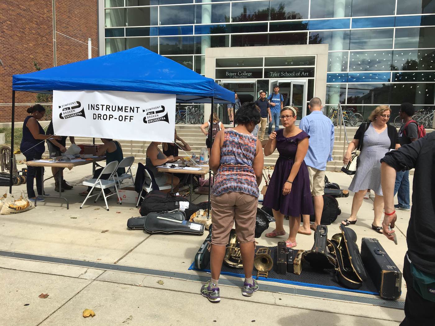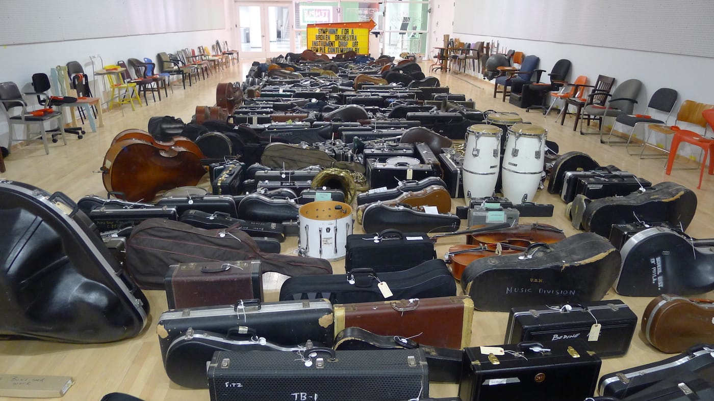 The School District of Philadelphia has over 1,000 broken musical instruments, from flutes with bent keys to trombones missing slides. Some of their fixes are easy, others complex, yet due to funding cuts in the city, the district doesn’t have a budget for either. Each broken instrument represents a student who’s unable to participate in music programs. When Robert Blackson, director of exhibitions and public programs at Temple University’s Tyler School of Art, learned about the issue, he saw an opportunity to draw attention to the struggle of music education, while also raising money for repairs.