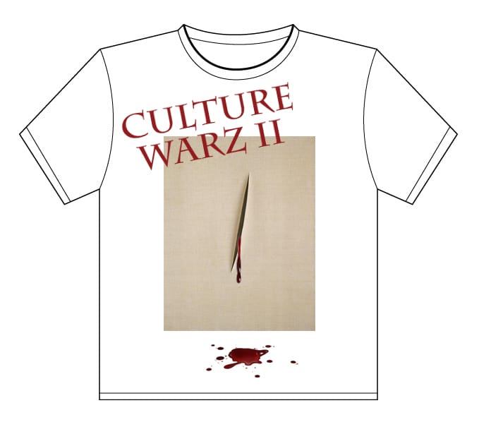 If you haven’t been living under a rock or in a place without wi-fi for the past two weeks, you know that the proverbial shit has hit the proverbial fan in the art world. From cases of censorship to the forced alteration of several exhibitions, it’s definitely been a good month for news, if not for art and artists. To commemorate the art world apocalypse, Hyperallergic has designed some t-shirts just to keep everyone up to date on our favorite museums’ antics. Things can only plummet into oblivion look up from here, folks.