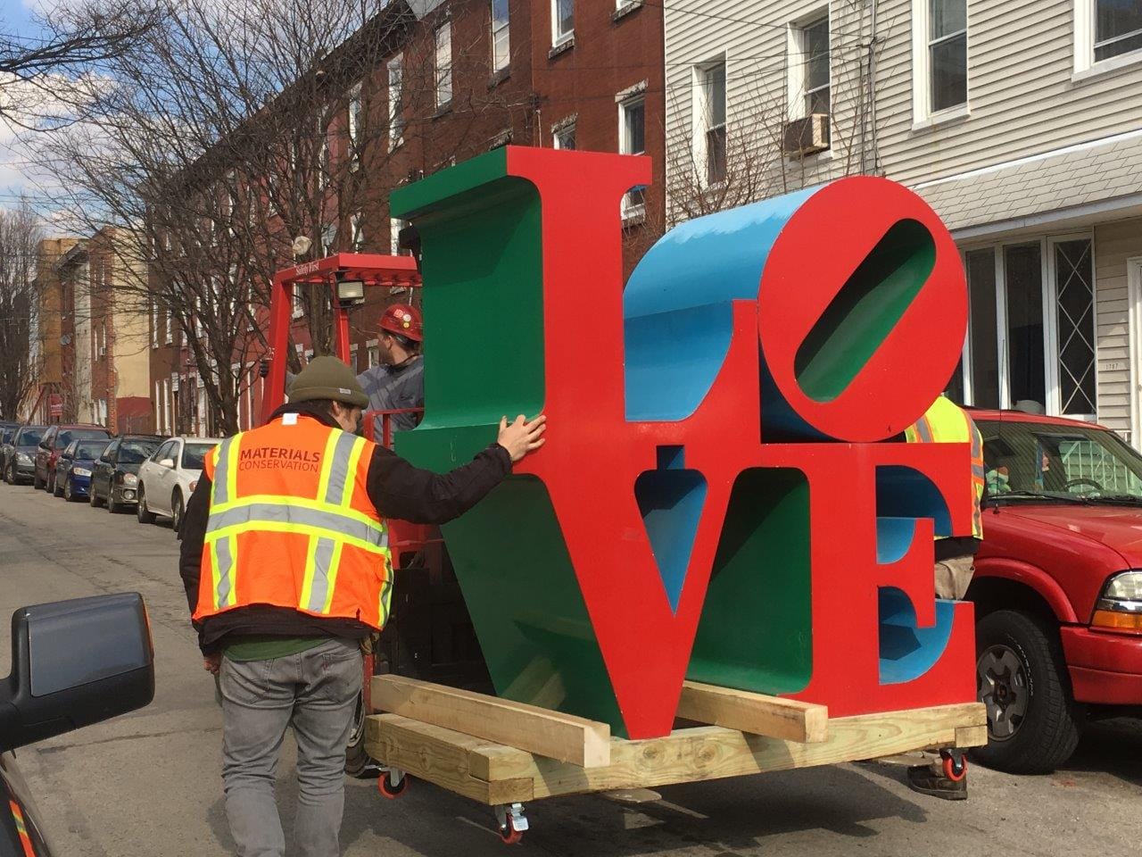 During the restoration process, Indiana’s representatives notified city officials of the piece’s original colors, which were confirmed by photographs in Temple University’s archives from 1976, when “LOVE” was installed — initially, on a long-term loan, for Philadelphia’s bicentennial; the city ended up purchasing it two years later.