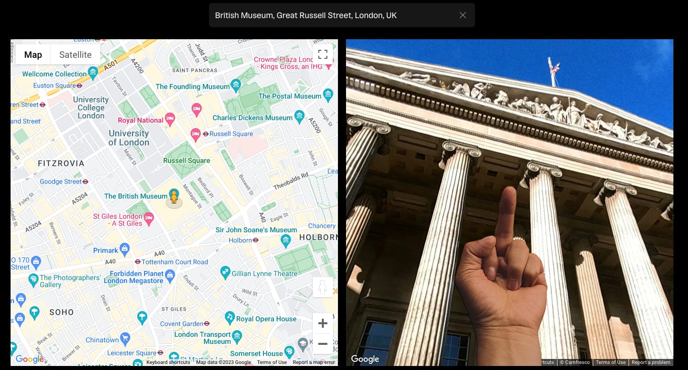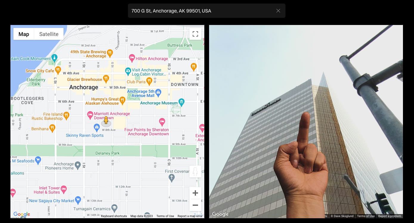 After my petty moment of sliding past my high school and my ex's house on Google Maps equipped with Weiwei's left hand middle finger, I had to zoom out beyond my own perspective and consider which bastions of wide-scale oppression needed the one-finger salute. So without further ado, I present five places that deserve to be flipped the bird: