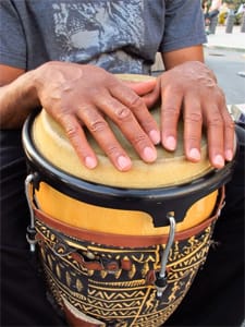 Finally, amongst the artists of past and current generations now at the Studio Museum this summer, the institution also creates a space for up-and coming artists to explore their talents. On my way out of the museum I caught LaGuardia High School student Genesis Valencia speak about her photograph Hands with a Heart, part of “Harlem Postcards Summer 2011” that turns artists’ shots of the Harlem neighborhood into postcards available free for visitors. Valencia talked about her experience hanging out with the drummers who play under the Adam Clayton Powell statue on 125th street, especially one particular man whose outlook on life left a strong impact on her. It may be one of the simpler works on view, but Valencia’s photograph captures a poignant moment of community that perfectly conveys what the Studio Museum is all about.