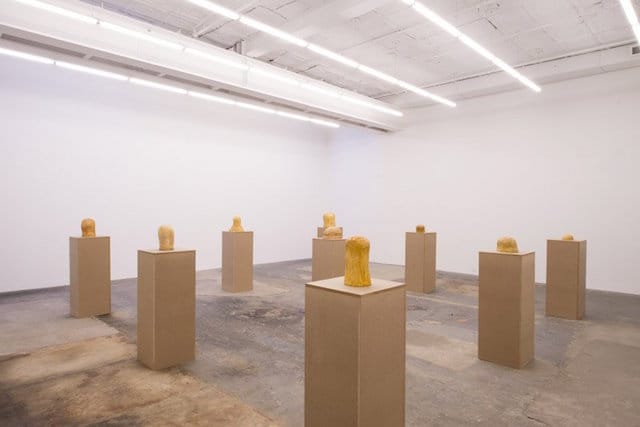 There are nine lumps of plaster and Hydrocal — covered in yellowing shellac and polished wax — on display at CANADA on the Lower East Side, their domed tops roughly the size and shape of a human skull (hence the title of the exhibition, Crania). Despite the humility of their materials and scale, they are works that demand your attention, leading you to look and look again.