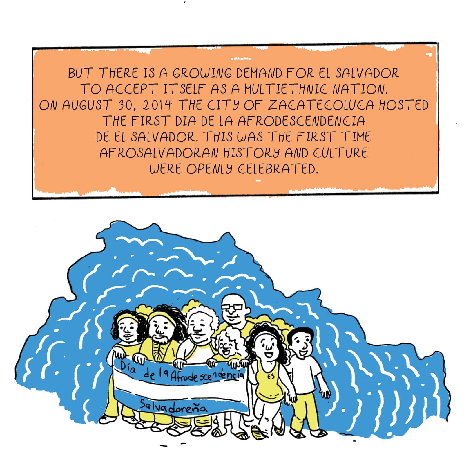 A su vez, los cómics e ilustraciones de la artista genderqueer Breena Nuñez, del Área de la Bahía de San Francisco, se centran en su identidad como afrodescendiente y salvadoreñx del lado paterno, y guatemaltecx del lado materno. En 2013, Nuñez creó Colocha-head, un zine que describe como punto de partida en su proceso de entender la negritud en El Salvador, al mismo tiempo recordando momentos de colorismo y anti-negritud en su cultura. “Sentía mucha curiosidad sobre por qué yo era percibidx y leídx como negrx, cuando la gente dijo por mucho tiempo que ‘no hay negros en El Salvador’”, dijo Nuñez.