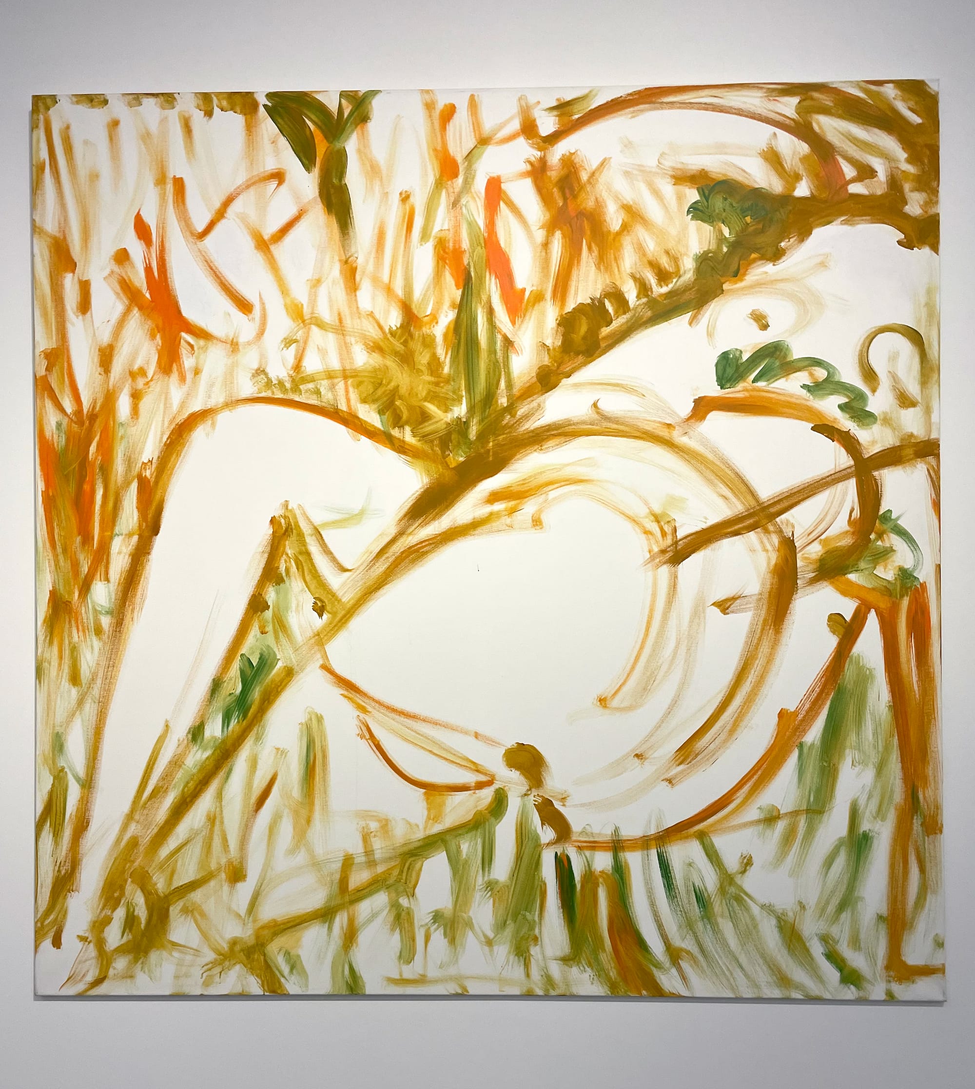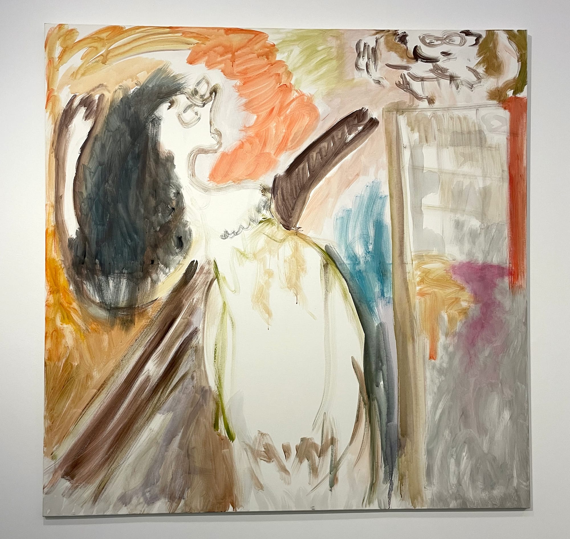 With a few smaller and more reserved exceptions, Sirbiladze painted big and wild — qualities that inevitably align her with the Viennese Actionists of the 1960s and '70s and the German Neo-Expressionist artists of the 1980s and ’90s, given her location and cultural moment. And there is some affinity; one painting directly references Martin Kippenberger (“Kippi,” 2010) and all the artists in these groups provoked visceral responses with their work. Yet the show’s most striking pieces are those for which the exuberant physicality of her gestures coheres (sometimes just barely) into the female figure, in all of its simmering and explosive corporeality.