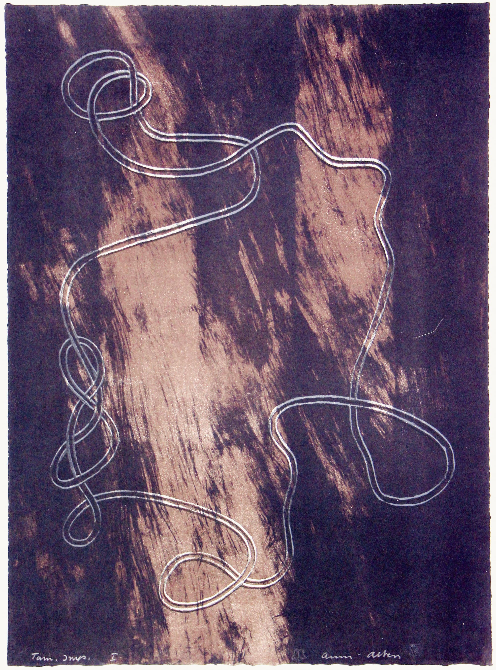 Throughout the 1960s and 1970s, the Museum of Contemporary Art San Diego received an extensive gift of Tamarind prints from local collectors, which recently drew the attention of curator Alana Hernandez. She noted that none of the artists in Experiments on Stone had had significant experience with lithography prior to arriving at Tamarind, and the exhibition illustrates how the medium became a dynamic departure for each. In “Line Involvement I” (1964), Anni Albers, best known for her weaving and textile work, releases yarn from the rigidity of the loom, yielding a printed image of a single thread loosely woven over itself into a looping tangle of structured fluidity. These lithographic experiments were a turning point for Albers, as Hernandez explains in the accompanying essay. After leaving Tamarind, Albers shifted her focus away from the loom to concentrate on printmaking.
