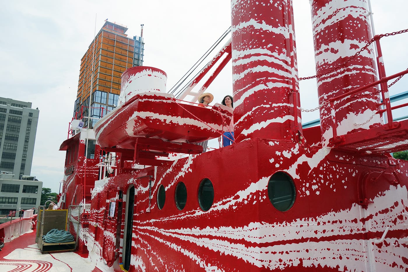 Following Flow Separation, the Harvey will return to its more subdued appearance. The sandblasting, stripping of decades of paint and rust, and fresh coats for Flow Separation support the survival of the vessel. “Every layer of paint you give a boat helps to conserve and preserve,” Enderby said. “A lot of restoration went into the boat in order to do this, so it is going to be further preserved for a longer duration of time.”