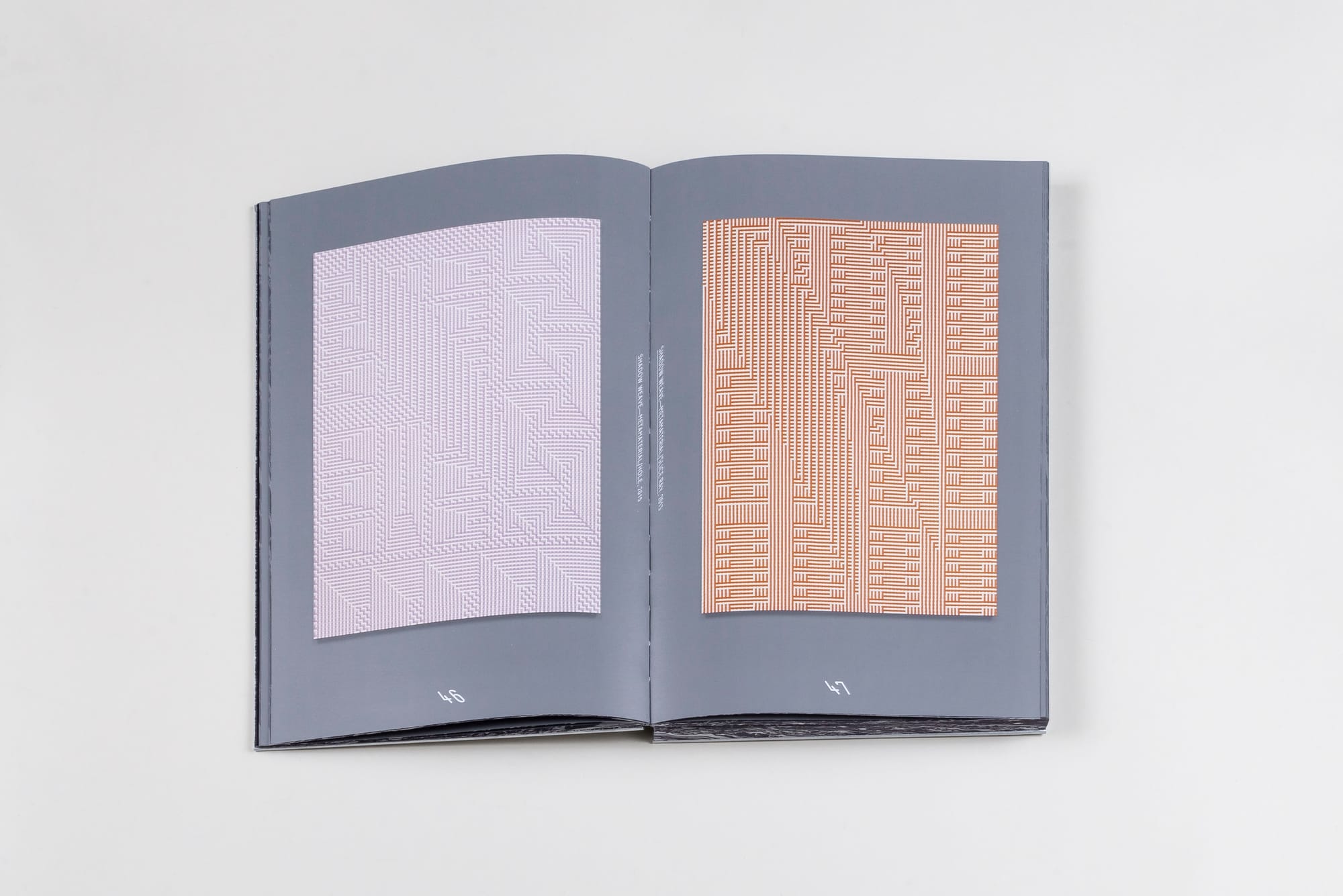 The title’s two mirroring letters are separated not by “versus,” as one may assume, but, according to the curators’ forward, by the mathematical symbol for “and/or,” suggesting both selection and inclusion. They write, “the book’s structure addresses the notion of reflection, with two halves that mirror each other as they slice through Tauba’s practice on different scales and levels.” As this catalogue’s construction and Auerbach’s broader practice evidence, her interest in mathematics and science complement her focus on craft; she considers concept and form as equals, with an attention to parts fitting together.