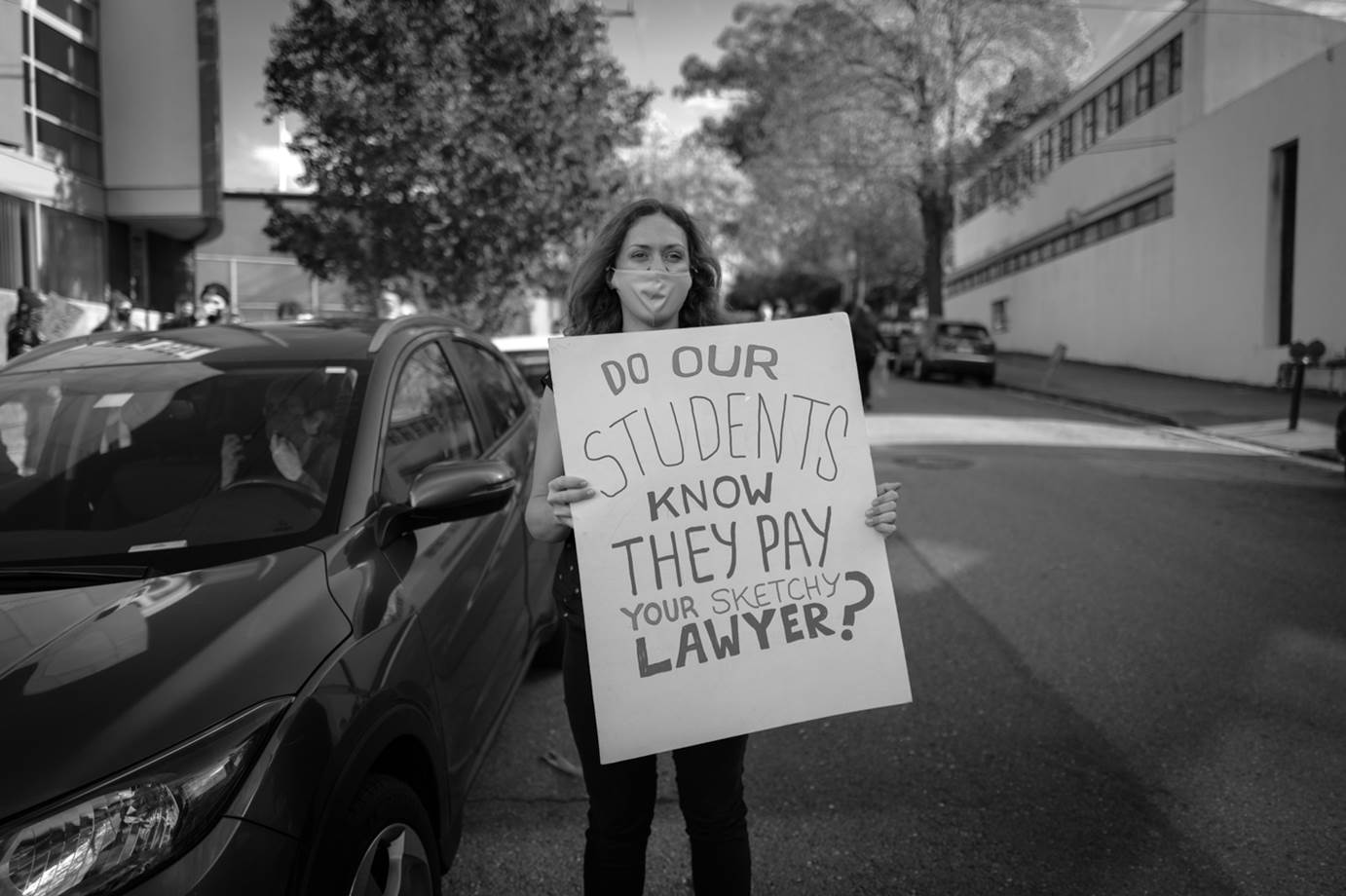 According to faculty and staff union members, represented by SEIU Local 1021, the administration has undermined its avowed commitment to social justice by stalling contract talks with both bargaining units. They also denounced the concurrent layoffs and pay cuts, accusing the school of excluding workers from institutional decision-making, including how to safely continue operations during a pandemic.