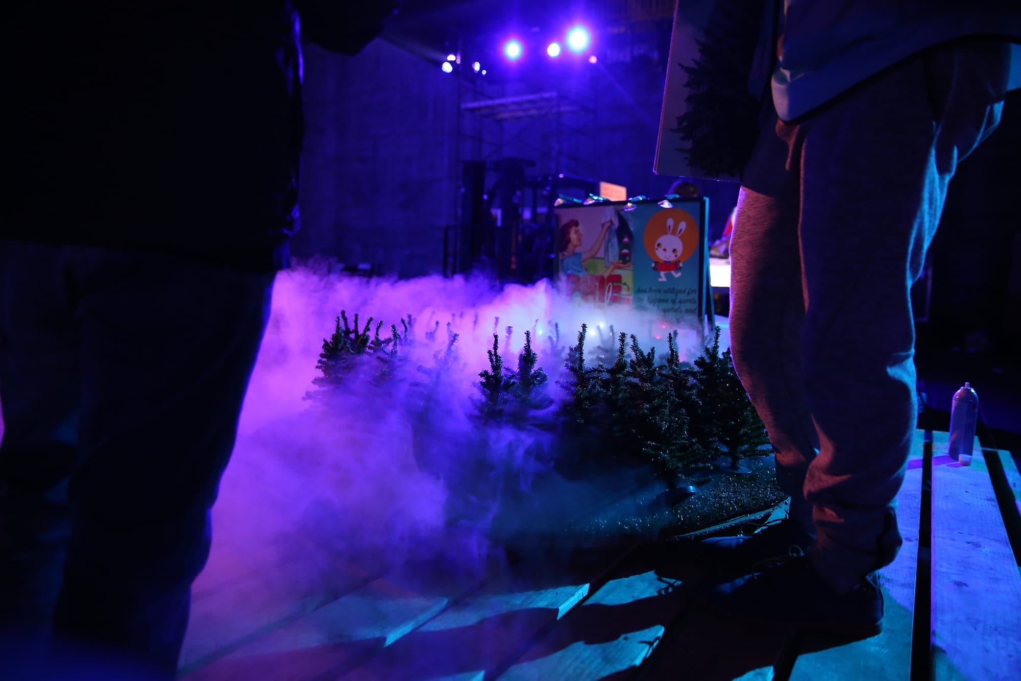 During this opening segment, the spectators stood corralled behind metal crowd-control barriers. The next phase of the performance brought the story back to human scale: at each of several mini-sets spread out across the pavement, one of the actors explained the references of the objects or dioramas on view.