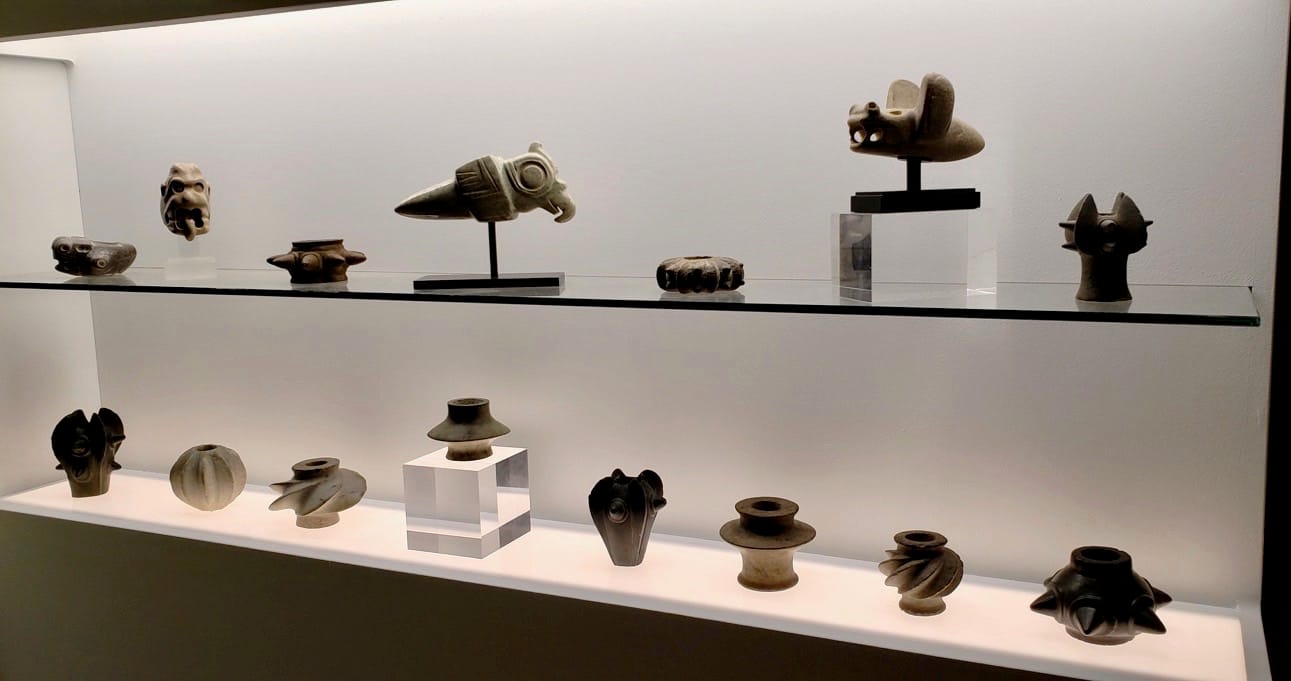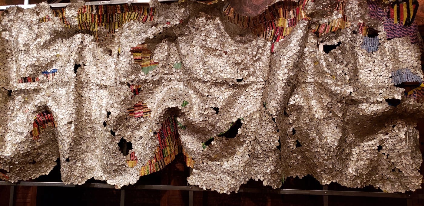 Another non-painting highlight was an El Anatsui draped tapestry, presented close to an ancient Egyptian head of a pharaoh (ca. 589–570 BCE), at the Axel Vervoordt gallery. This display scheme strikes me as a strange homology since El Anatsui is Ghanaian working primarily in Nigeria, and in the 21st century, no less, while the Egyptian artifact is both geographically and chronologically distal. Another gallery, Colnaghi, featured a long display table of Central and South American mace heads, which displayed this manner — on a table without any contextualizing information as they would be at a bazaar — suggested that they might be purchased as tchotchkes for someone’s home office, a paper weight with an intriguing back story.