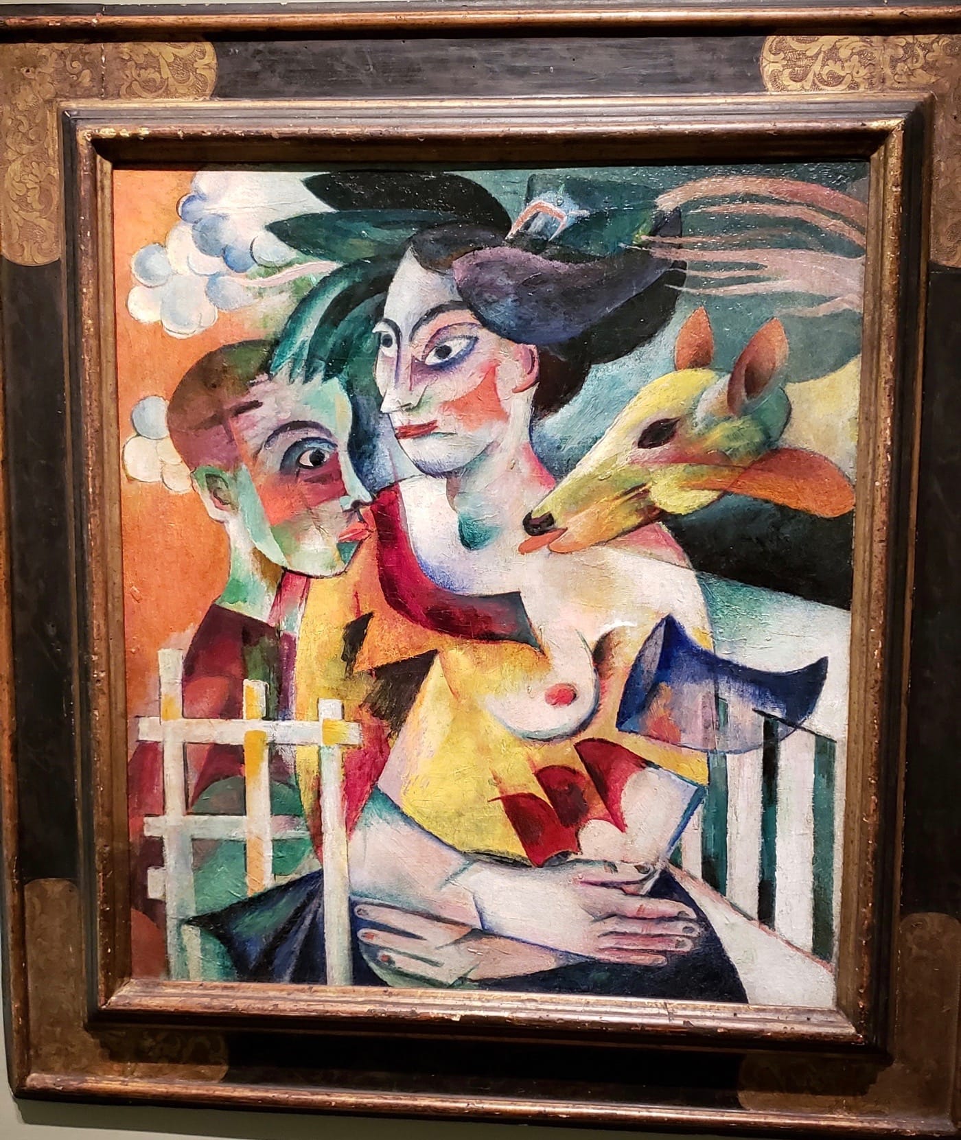 TEFAF, which proclaims itself to be a fair of fine and decorative art from antiquity to 1920, offers a manageable and even fun experience for me, because I just ignore all the jewelry and ornamental schtick and look for the unexpected art. Inevitably, I did find some paintings that were quirky and surprising like the Pietro Annigoni portrait of what looks like an inert man on the edge of a couch, with his head collapsed against a dressing screen. The title gives the game away though: “A Mannequin in a Studio” (1947). Lastly, there is the Heinrich Campendonk portrait “Mother with Child and Deer” (ca. 1913) which looks like a lavish fusion of Surrealism, Cubism, squeezed through the palette of Franz Marc of the Blue Rider Group. It’s in those pieces when the TEFAF becomes much more than a bazaar for the decorative: It becomes a place of discovery.