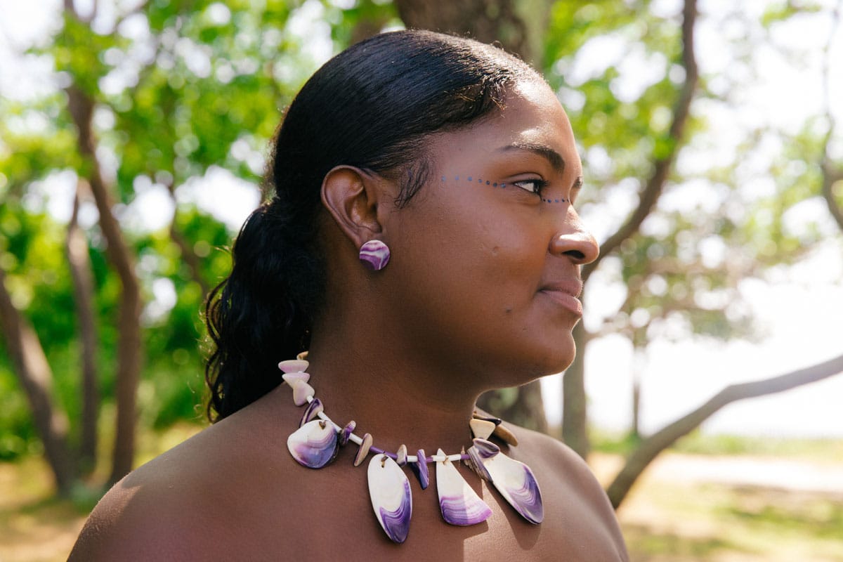 The people of the Shinnecock Indian Nation of Eastern Long Island in New York State can trace their presence on their land back more than ten thousand years. Shinnecock’s claim is evident through Clovis Projectile Points from the Paleo-Indian Period (15,000–3,500 BCE). By 1000 BCE, Shinnecock people and other local tribal communities expressed themselves through clay pottery designs, wood sculptures, and wampum shell/bone beadwork. With the arrival of Europeans, Indigenous artisans incorporated richly colored cloth, glass beads, and blankets into their crafts and regalia. In the early 20th century, Shinnecock artisans loaded their wagons with baskets, caned chairs, beaded moccasins, embroidered table linens, eel traps, corn and herb mortars, duck decoys, wooden spoons, and scrub brushes, and sold them in nearby white communities.