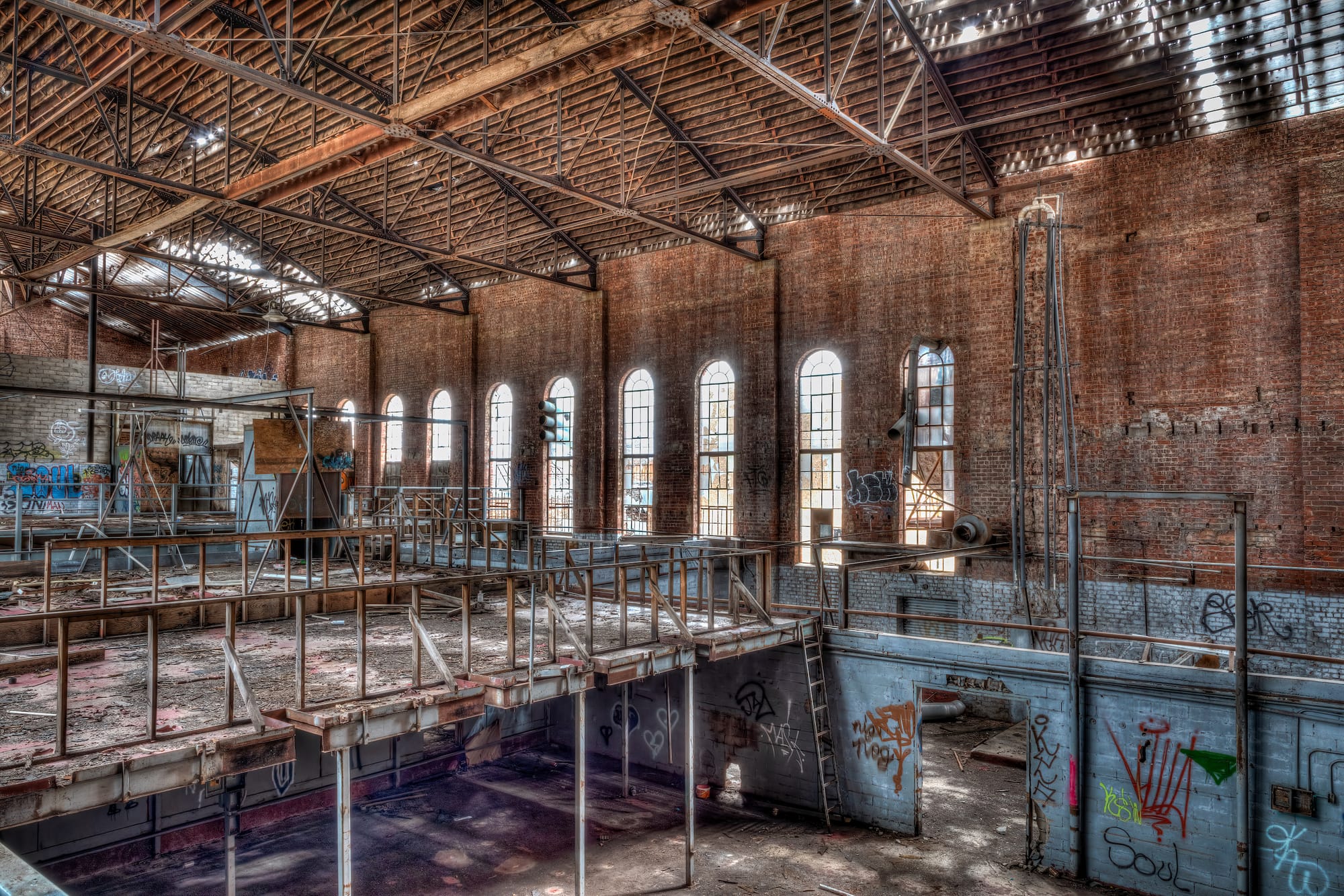 The building's auditorium was built in 1924 to seat over 2,000 people. That's where the Texas KKK held meetings and minstrel shows. In 1927, the building was purchased by a department store and was used as a dance and concert venue. In 1946, it became a pecan warehouse.