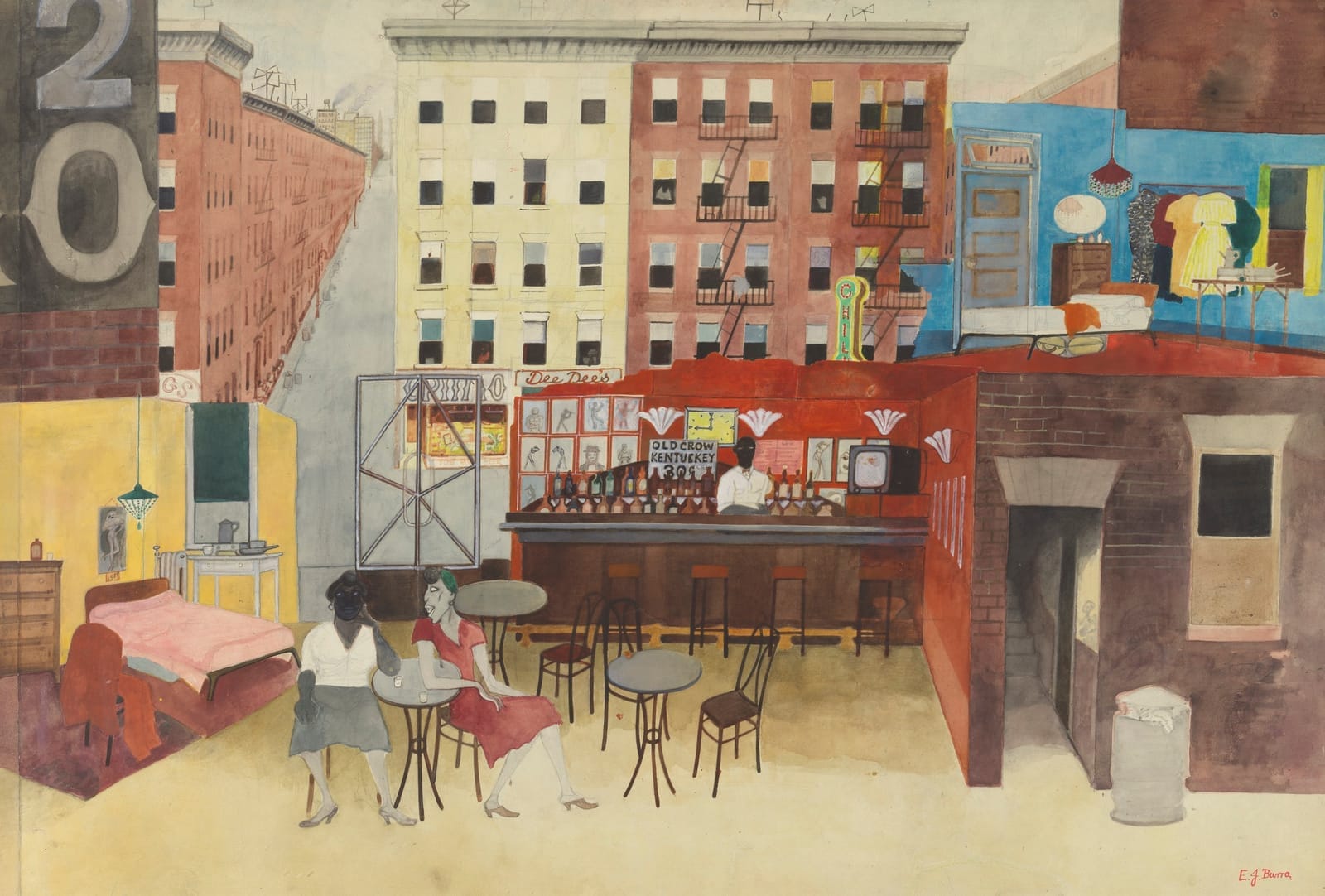Edward Burra, that oddest of oddballs among the English artists who emerged in the 1920s, looks the polar opposite of his strangely stylized art: serious, dutiful, and nonthreatening. The art itself is all wildness writ large. Tate Britain’s full career tells Burra’s whole story, and makes a strong case for his unorthodox genius. —Michael Glover