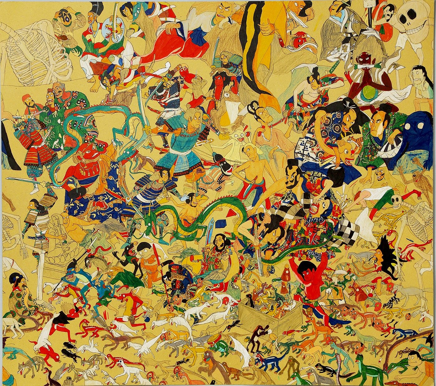 The Tokyo-based Yukiko Koide Presents, a gallery whose director is a recognized authority in Japan’s small but fast-evolving art brut/outsider field, will show drawings by Yuichiro Ukai, a young artist who packs his dense compositions with dinosaurs, skeletons, giant spiders, samurai, and some rather lost-looking Buddhist deities. His complex images bring to mind centuries-old emaki, or illustrated scrolls. Koide said, “They’re also very contemporary, filled with the action-packed energy of Japanese manga [comics].” She will also show abstract, unglazed-ceramic works by Hideaki Yoshikawa. He covers them with tiny dots, which are, in fact, the eyes of miniscule faces. Both Ukai and Yoshikawa are associated with Yamanami Kobo, an innovative art-therapy workshop in Shiga.