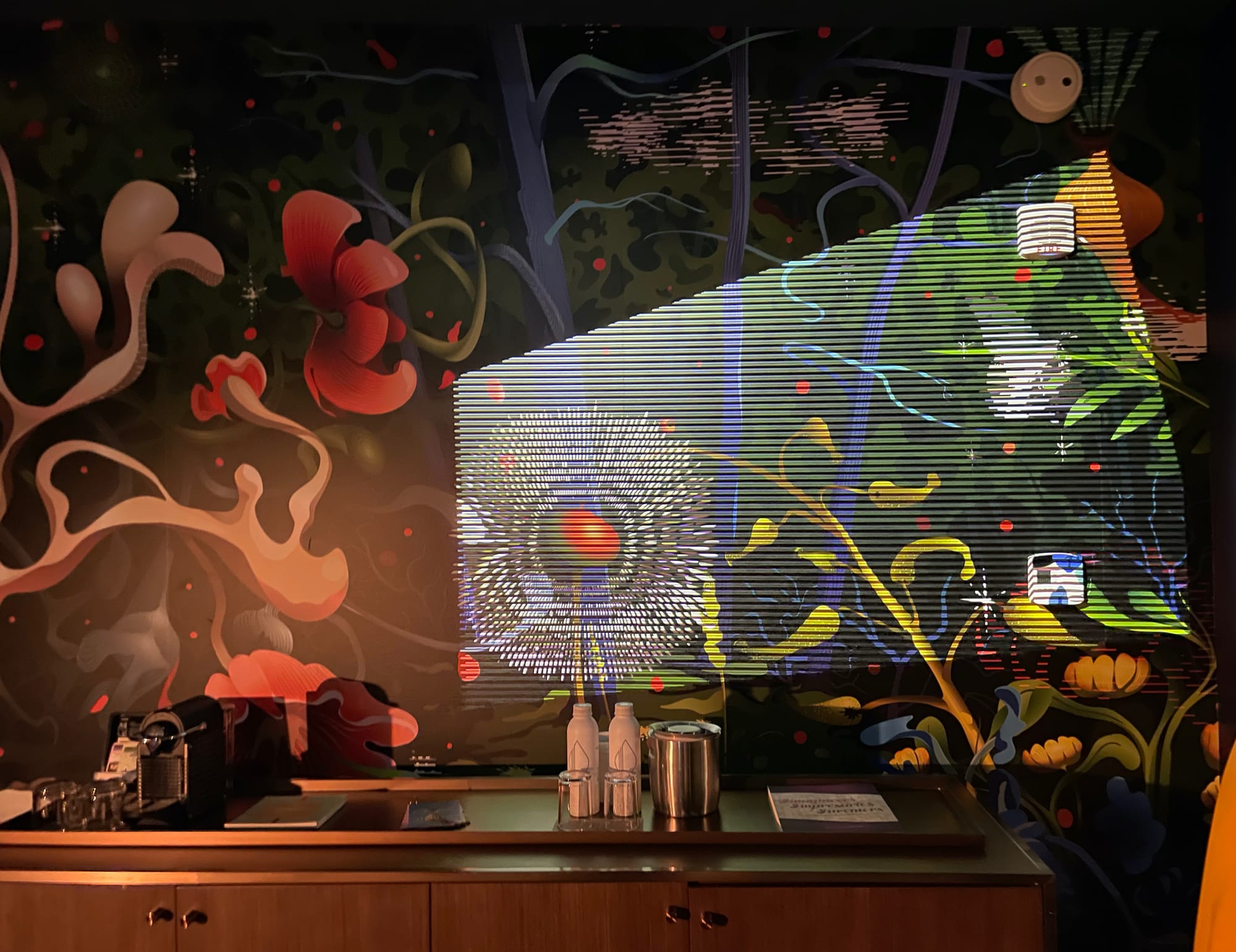 All of the art is striking to encounter outside of a traditional museum or gallery context; Alice Gray Stites, who oversees the curation for all of the locations, has worked with private collectors and nontraditional environments in the past and balances the public/private dynamic well. The concept of a museum hotel risks transforming art into decoration, but the rooms and exhibitions are too assertive to become background objects.