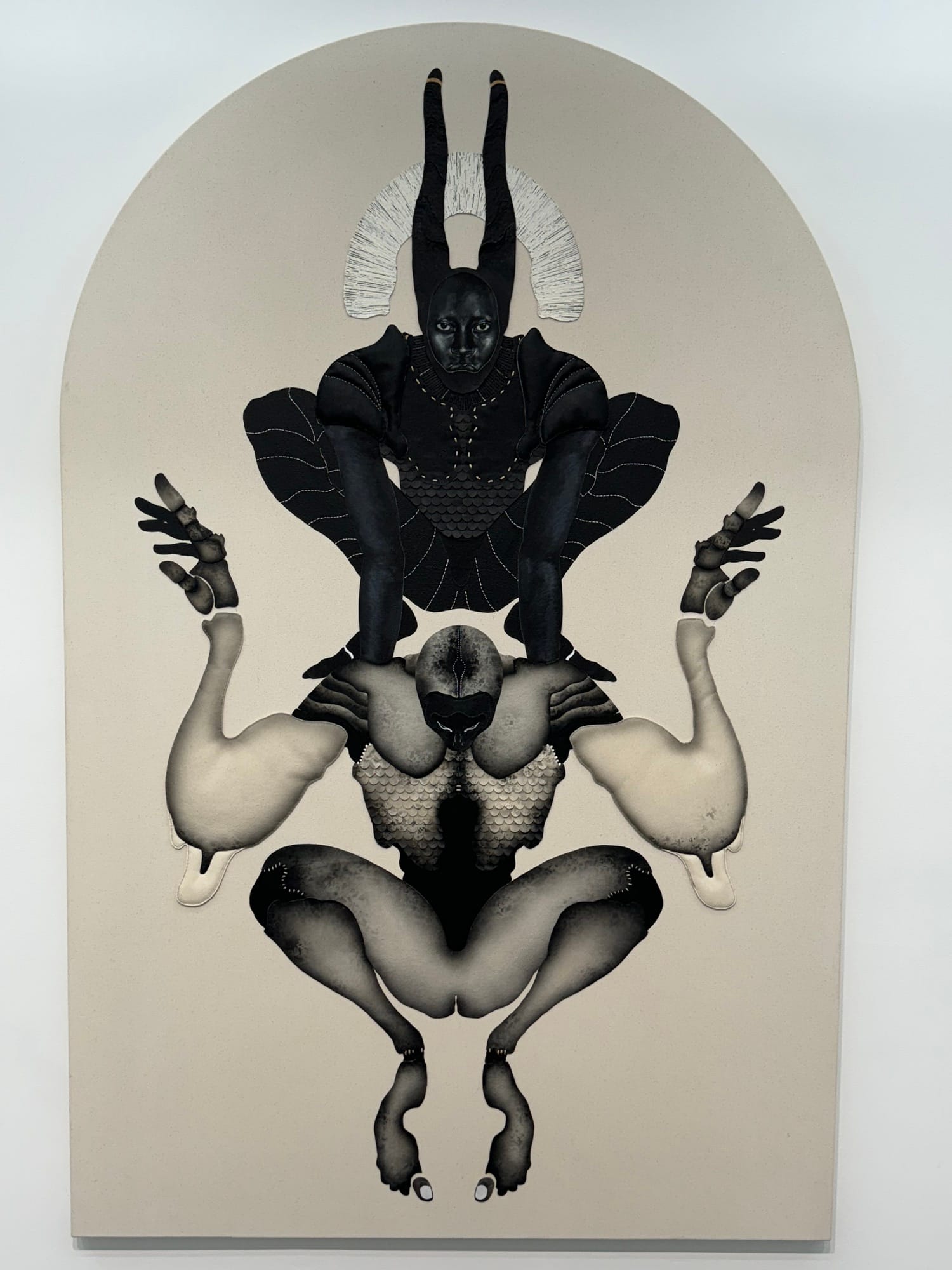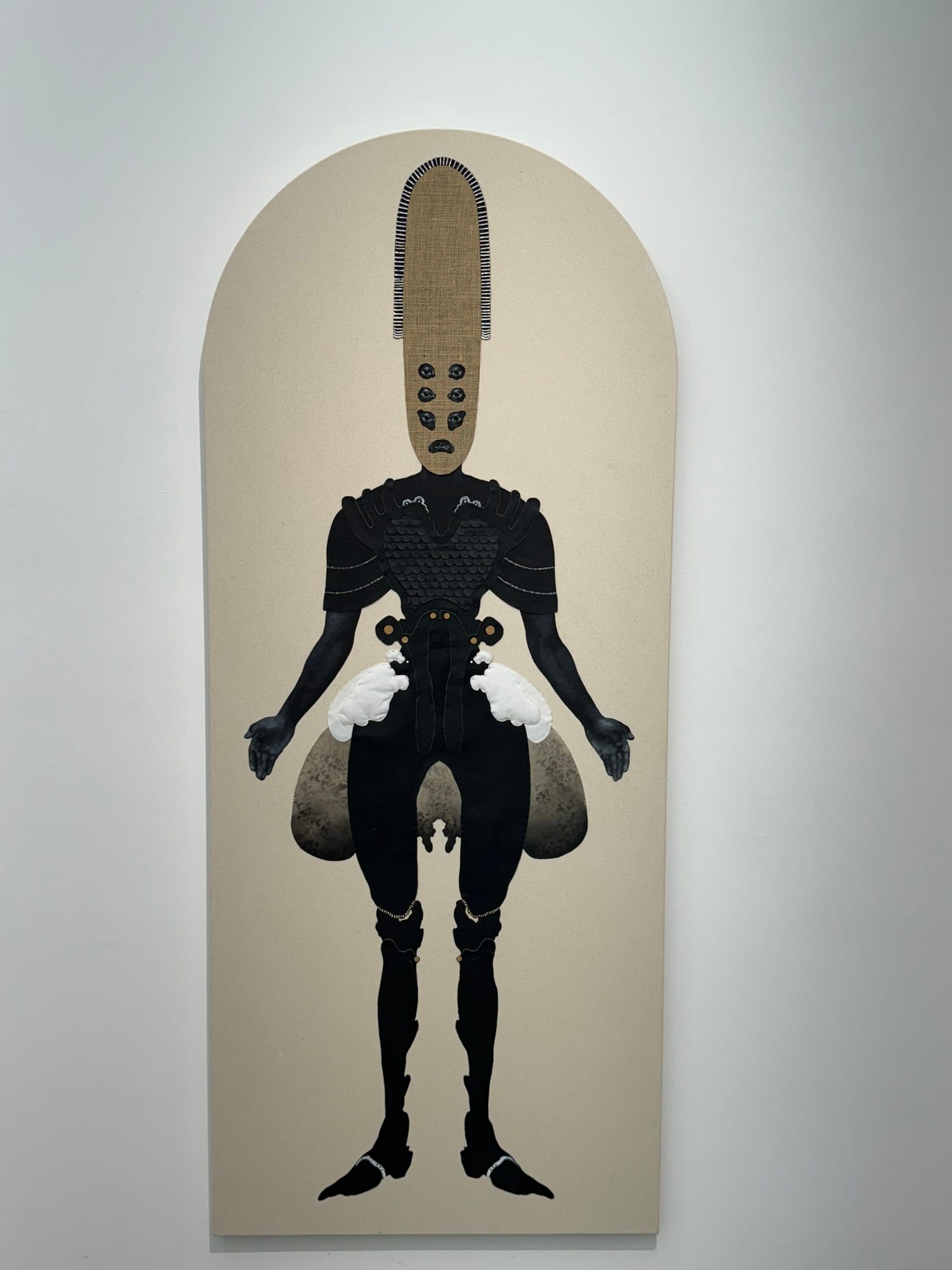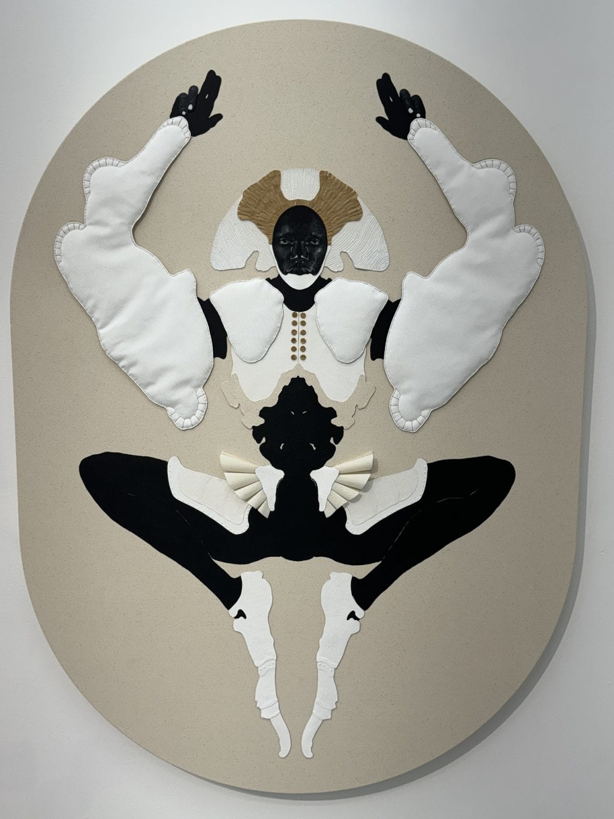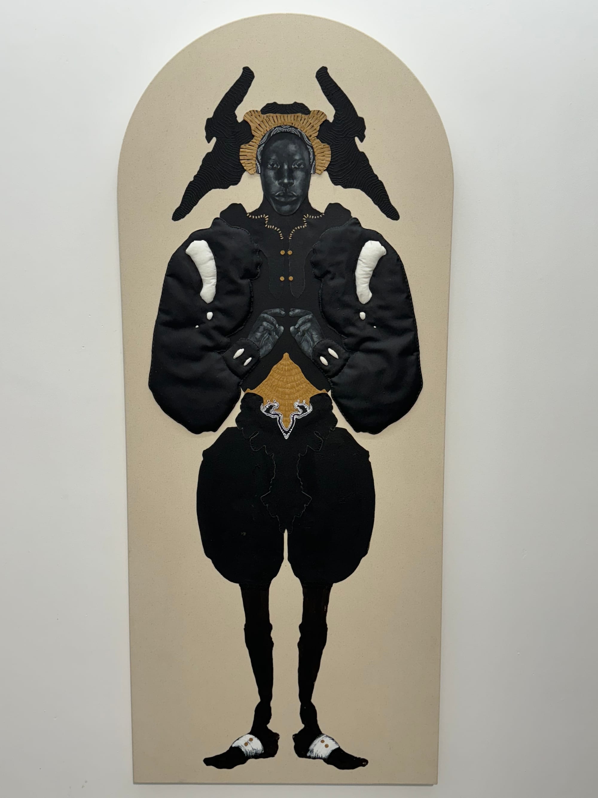 In a gem of a show at Efraín López gallery in Tribeca through October 26, Braxton Garneau takes Trinidad's legendary carnival costumes to the next level in his new series of mixed-media works. Restricted to a color palette of blacks, whites, grays, beiges, and tans, they allow the textures of materials like shell to come alive with both graphic intensity and economy of detail.