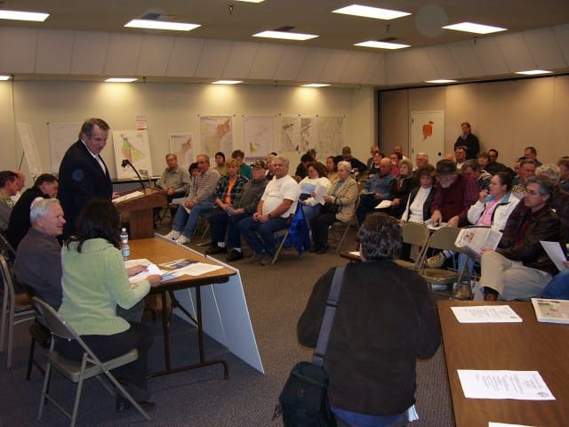 Maybe the problem with art and democracy is that democracy isn’t really all that glamourous. Yes, there are the heroes and the defining moments in our country’s history that we can all point pridefully toward, yet they are few and far in between, and when it comes down to it, are these the most important? Maybe what creates the most change in our democratic society comes out of community board meetings in dingy city buildings where voters sit on old metal folding chairs or stand when there isn’t enough room. Local politics is often messy, slow, and without glamour. These small community meetings (below) seem to more closely resemble AA meetings than any campaign ad I’ve ever seen. The grittiness of local politics and ugly reality of super pacs in large elections has little room for aesthetic consideration.