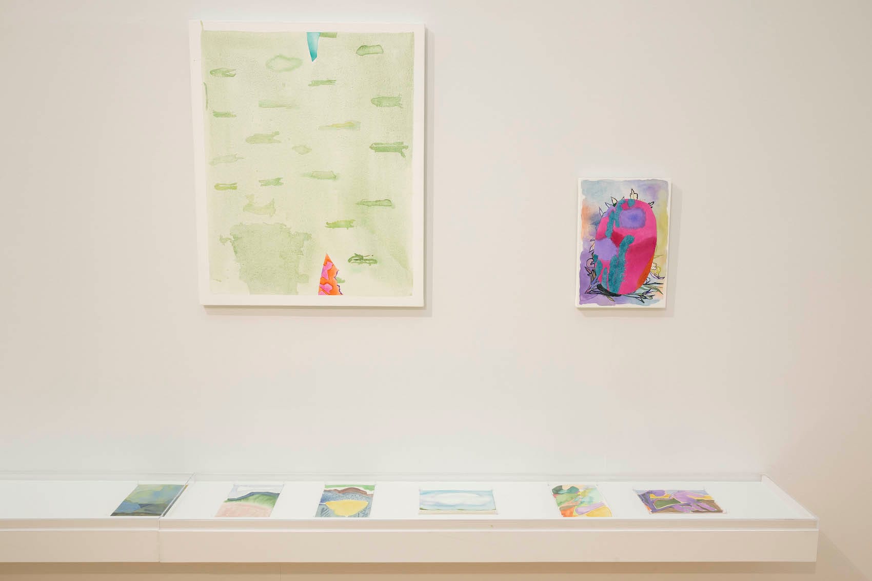Know what else is fun? Painting with other people. In 2017, Leslie Baum began the “Plein Air Project,” inviting friends, colleagues, even strangers to join her on painting dates at a park, in a backyard, at the botanical gardens, or in some other nature area. She kept the resulting watercolors, made photocopies, cut them up, and rearranged their mixed-up parts into collage studies for a series of large canvases, 13 of which are up at the Cultural Center. These are strange, deeply pleasing pictures, done in thin, luminescent acrylic washes, and they are as much portmanteau landscapes as impressionistic memories of the encounters the people who made the original sketches experienced in those places, Baum included. In a move that is generous, in terms of sharing inspiration, and helpful for understanding how the project works, Baum’s paintings are hung above a shallow display case that wraps around the gallery and contains dozens of those initial watercolor sketches. A visitor can stop to look at “shaping the day: rs, ac, and ph” and play the charming game of locating its visual elements — the broken heart shape, the staccato marks in shades of blue — in the plein air sketches below. Nothing ever appears exactly as it once was. Instead it gives rise to something new, and then maybe something else, too.