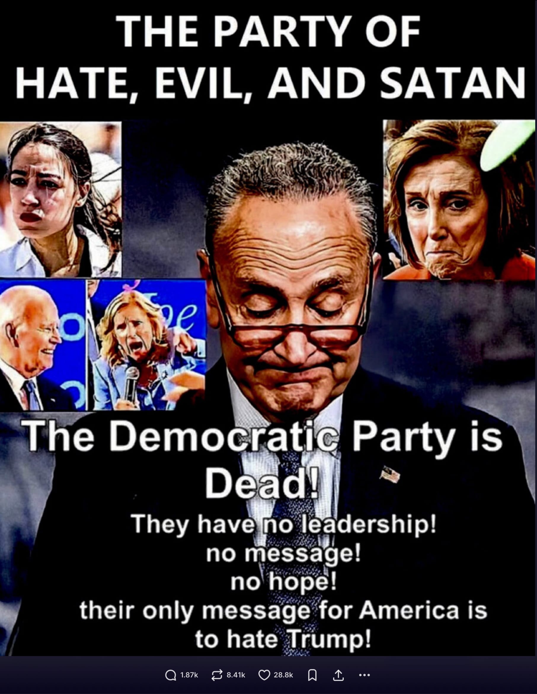 A nadir of Trump’s memes, so far, was his promulgation of an AI slop video of himself as a fighter pilot in a king’s crown who, despite incorrectly wearing his oxygen mask, is able to dump tons of noxious, brown liquid shit from his plane as he flies above a group of No Kings protestors in Times Square. Shocking as it may be to envision an American president fantasizing not just about flinging excrement at American citizens exercising their First Amendment rights, but also doing it with a weapon of war, nothing about Trump’s juvenile video should actually be surprising considering his character. Also unsurprising is the craven boot-licking by Republican politicians that makes Trump’s reign possible — see, for instance, Speaker of the House Mike Johnson (an evangelical Christian) claiming that the video was simply “using satire to make a point.”