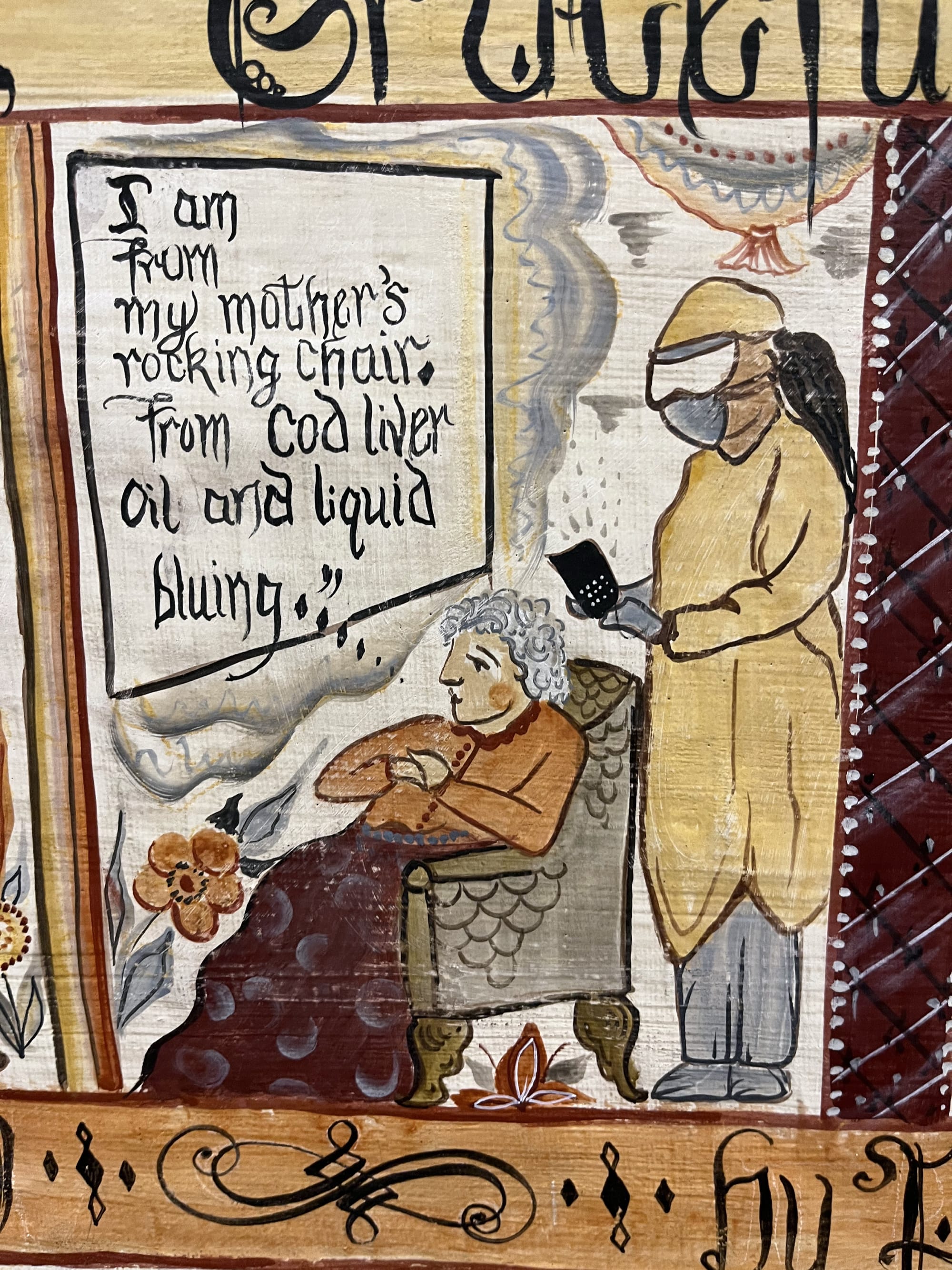These works are new interpretations of traditions that have sometimes been passed down so seamlessly that some forgot when or how they learned a particular skill. On view, for instance, are many forms of the Norwegian tradition of Rosemaling, and Minnesota-based Tara Austin reinterprets the signature ornamentation of the Swedish Dala horse as translucent swirls in her acrylic-and-paint “Dala Horse (large, medium, small)” (undated). These contemporary interpretations offer a way for artists to acknowledge their roots while building new forms, and each work opens up portals into other lineages.