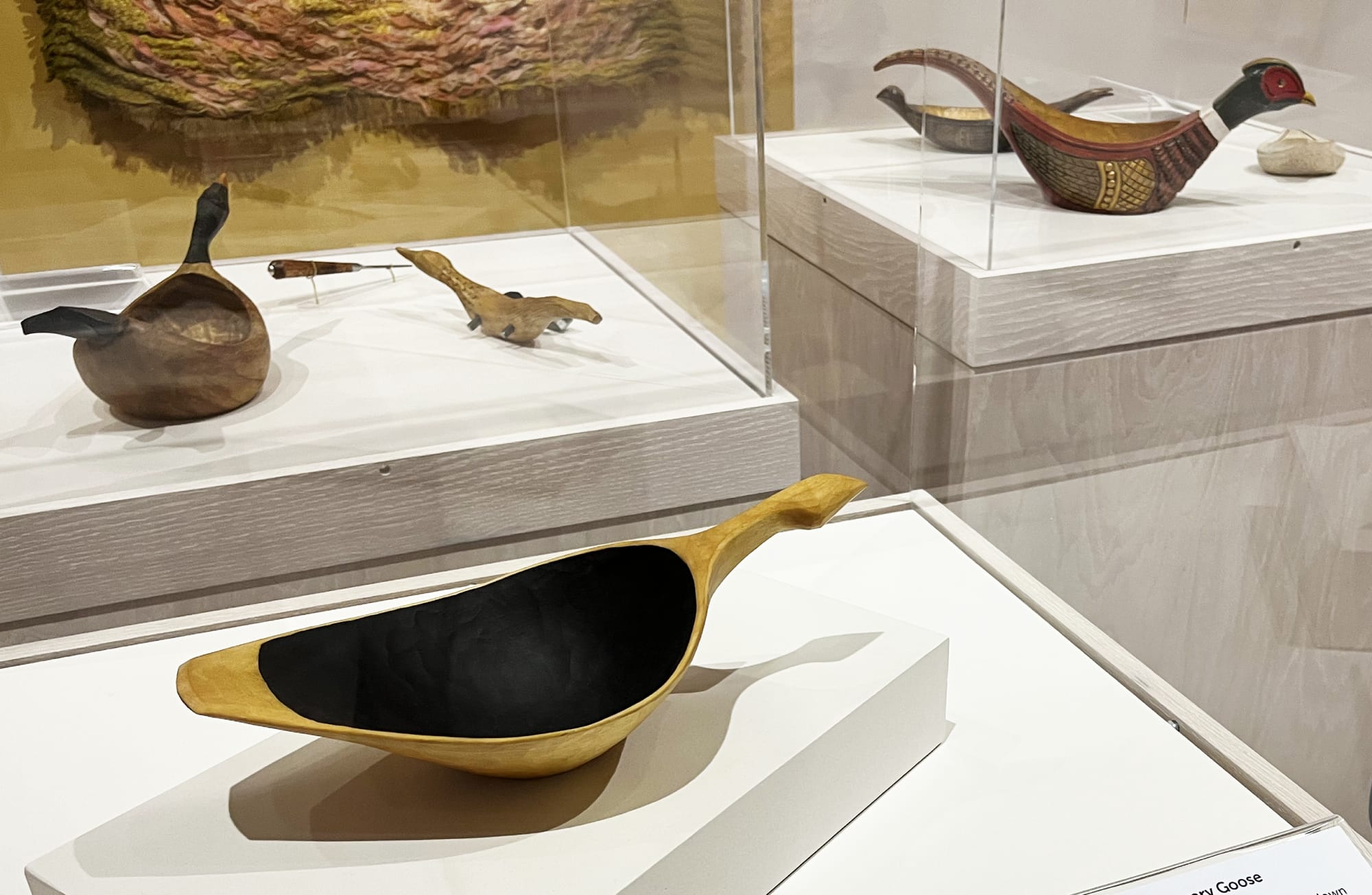 The artists in this exhibition suggest that traditional objects can have a resonance beyond their original form, and that they can be adapted to a local setting with regional materials and still be part of a Nordic traditional artistic lineage. As Yerkovich asked during her walkthrough, “How do we keep these traditional skills alive, that might inspire the continuity of the tradition, rather than being left in someone’s grandmother’s cabinet?” Indeed, this show will soon travel to many more museums in the Upper Midwest, which might just inspire the next generation of these artists.