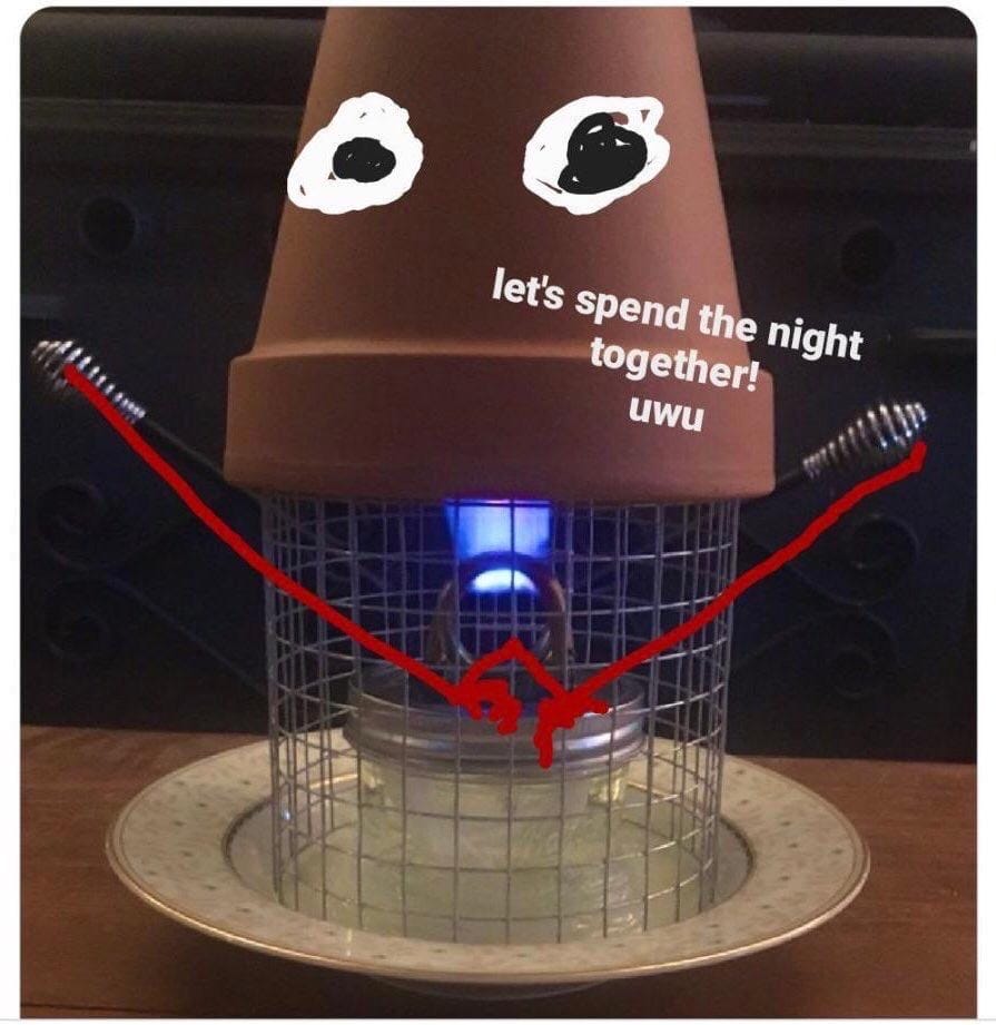 According to Heater Bloc, the final step in the design was figuring out how to contain an open flame in a tent safely. The solution they came up with is to build a metal enclosure around the heaters and cover it with terracotta pots as lids to provide radiant heat.