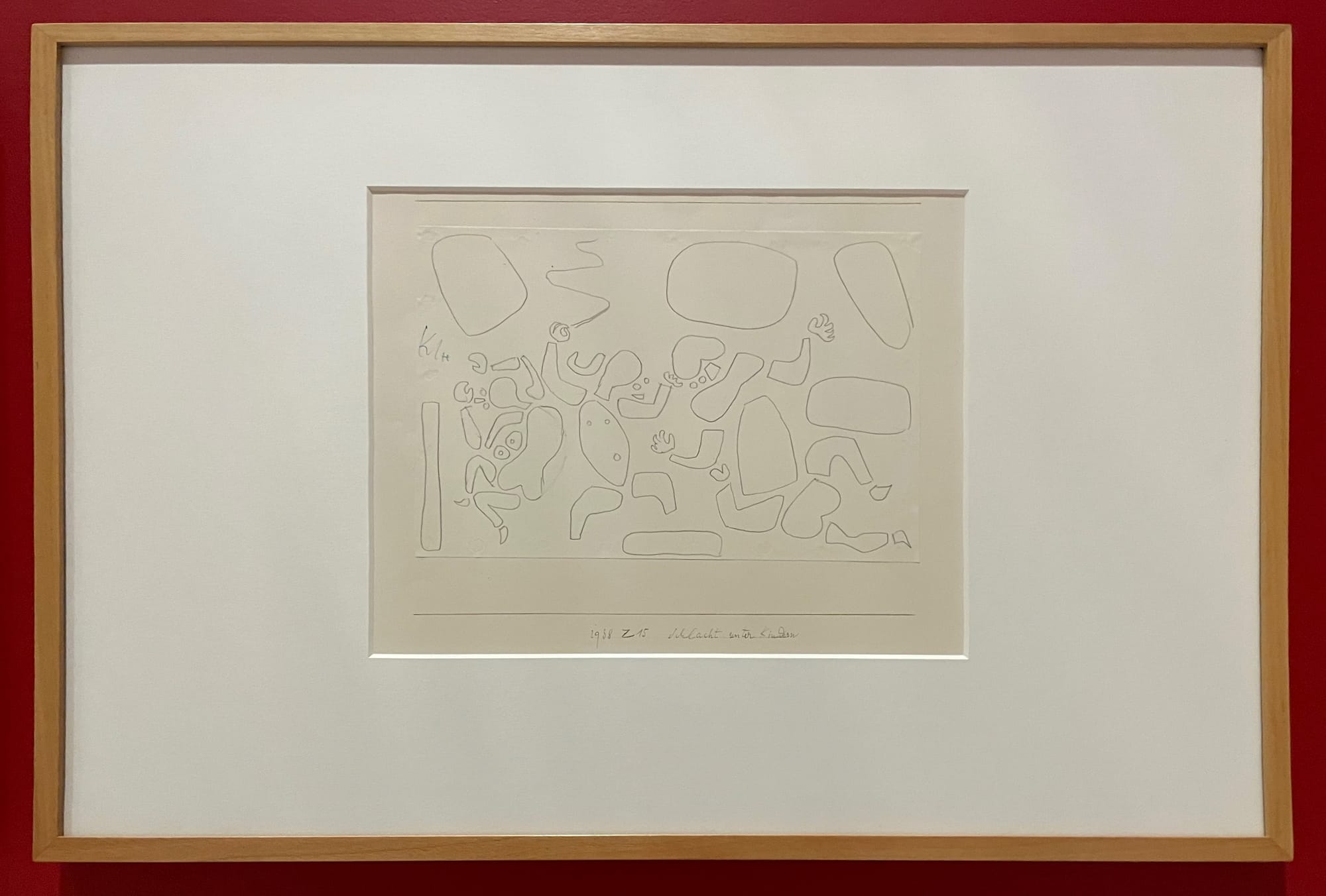 Klee’s political voice does come through in an important but unassuming part of the show: Across a series of unruly chalk-and-pencil drawings displayed in cases in the center of the galleries — easily eclipsed by the vibrant paintings on the walls — are lots of kids. Klee was and still is unique in his capacity to see the world through grown-up and youthful eyes, and to respect the wisdom of children. Drawings of what he called the “national-socialist revolution” portray violence and authoritarianism, many with an emphasis on youth. Ranging from the chilling “Child Murder” (1933) to the horrific “Child-Eater” (1939) to the anarchic “Difficult Children” (1933) and “Battle Among Children” (1938), they reflect the artist’s sympathy and insight into the dangers at the wild frontier of childhood. The illustrations don’t seem to specify an age group, though, and suggest that the real-world dangers are adults in power acting juvenile, pantomiming world domination and demagoguery, resulting in actual death.