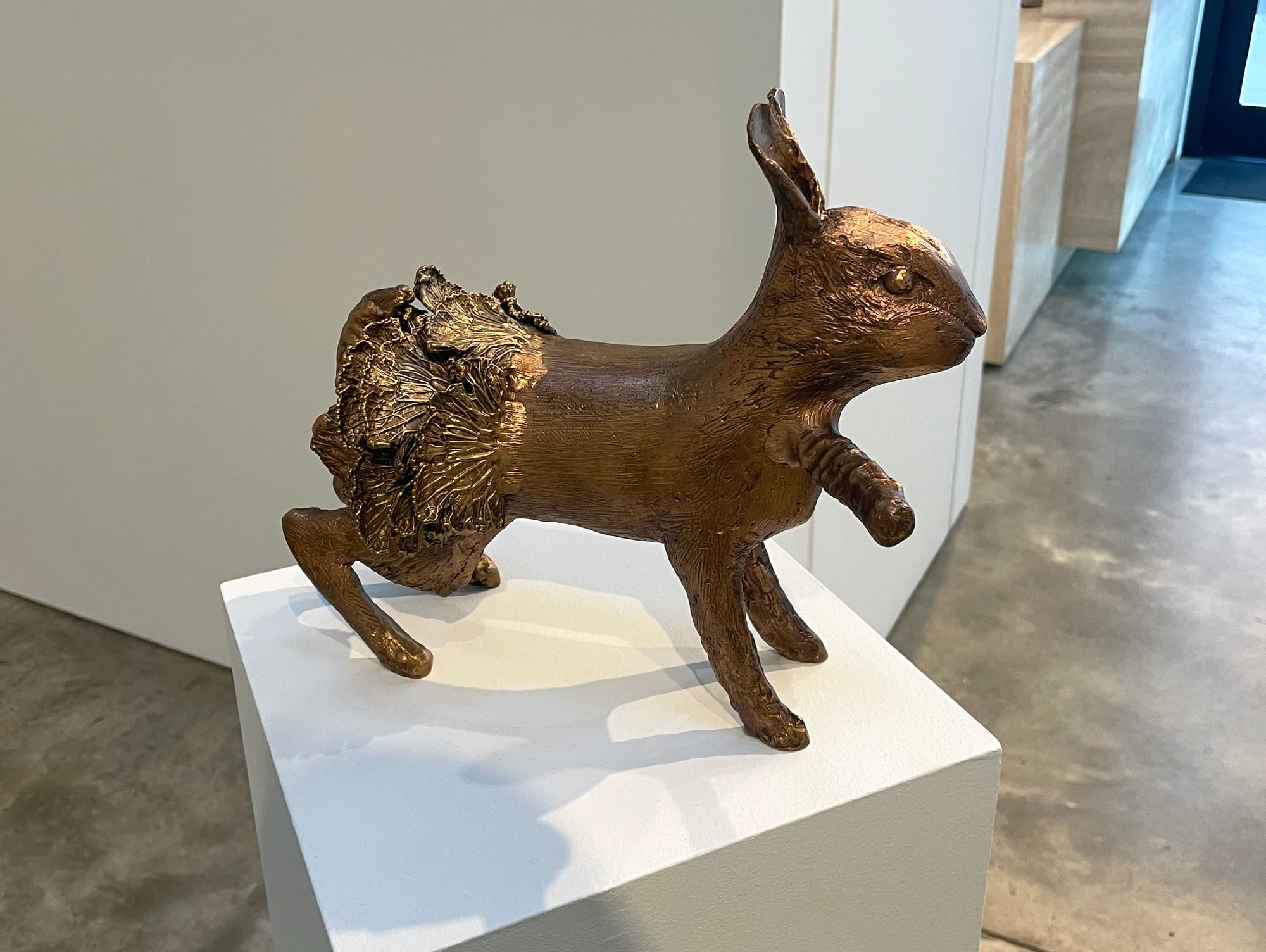 As I stepped into Kasmin Gallery's Les Lalanne: Zoophites I felt like I was Alice tumbling into Wonderland. The room was filled with oversized animals, each adorned with peculiar features and foliage that appear to defy gravity, for a whimsical and surreal experience. These animal sculptures, many of which transform into utilitarian household objects — a bar cart, a bench, a chair, a desk — were set in close proximity to one another, like animals around a watering hole. Blending zoomorphic elements with a fanciful aesthetic, the works evoked a sense of wonder and enchantment in me.