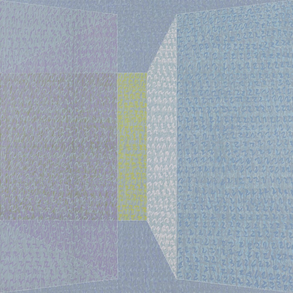 Is this “post-Minimalism”? The curious thing about the question is that Tworkov, in his position as Chair of the Art Department of the School of Art and Architecture at Yale University (1963–1969), taught such leading Minimalists as Richard Serra, Robert Mangold and Brice Marden. It’s as if he led his students to their own radical critiques, and then went on to the next step with such paintings as “P73 #5” (1973), a geometric abstraction featuring skewed planes and a beguiling sense of perspective. The multitude of small, squiggling strokes in green, purple, blue, and white running across the entire surface of this work could be viewed as anticipating the Pattern and Decoration movement.