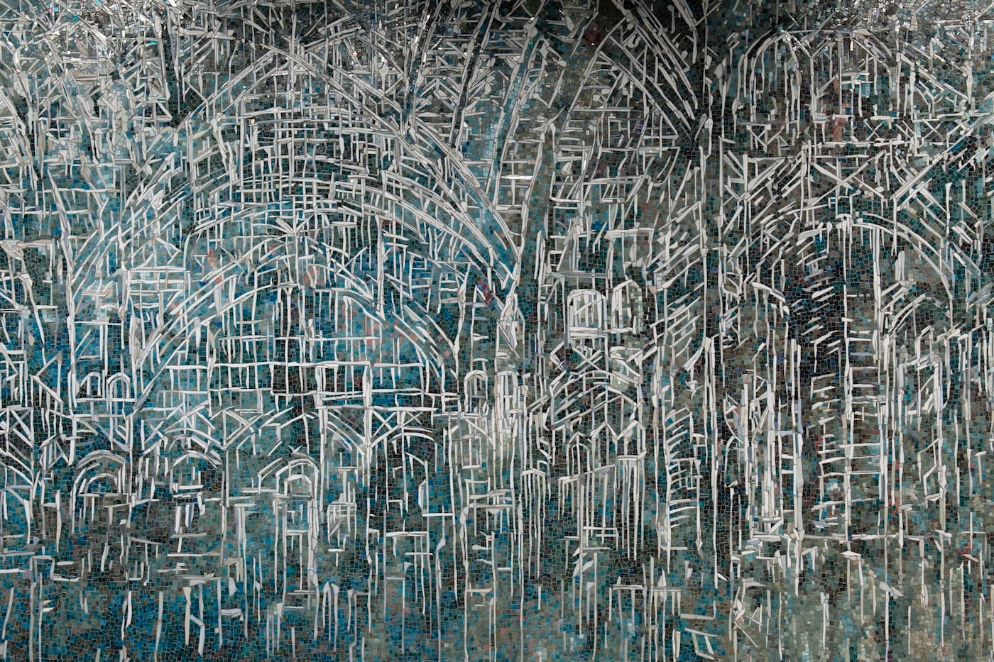 Commissioned by MTA Arts & Design for the mezzanine spaces at the 34th Street Penn Station subway stop, the permanent installation consists of two long murals. “The Arches of Old Penn Station” is an impressionist work of fluid line and turquoise tiling that recalls the latter-day bravura of the 1910 building, which was designed by the architecture firm McKim, Mead, and White. “The Arc of Gradiva” is based upon the literary work of the German author Wilhelm Jensen.