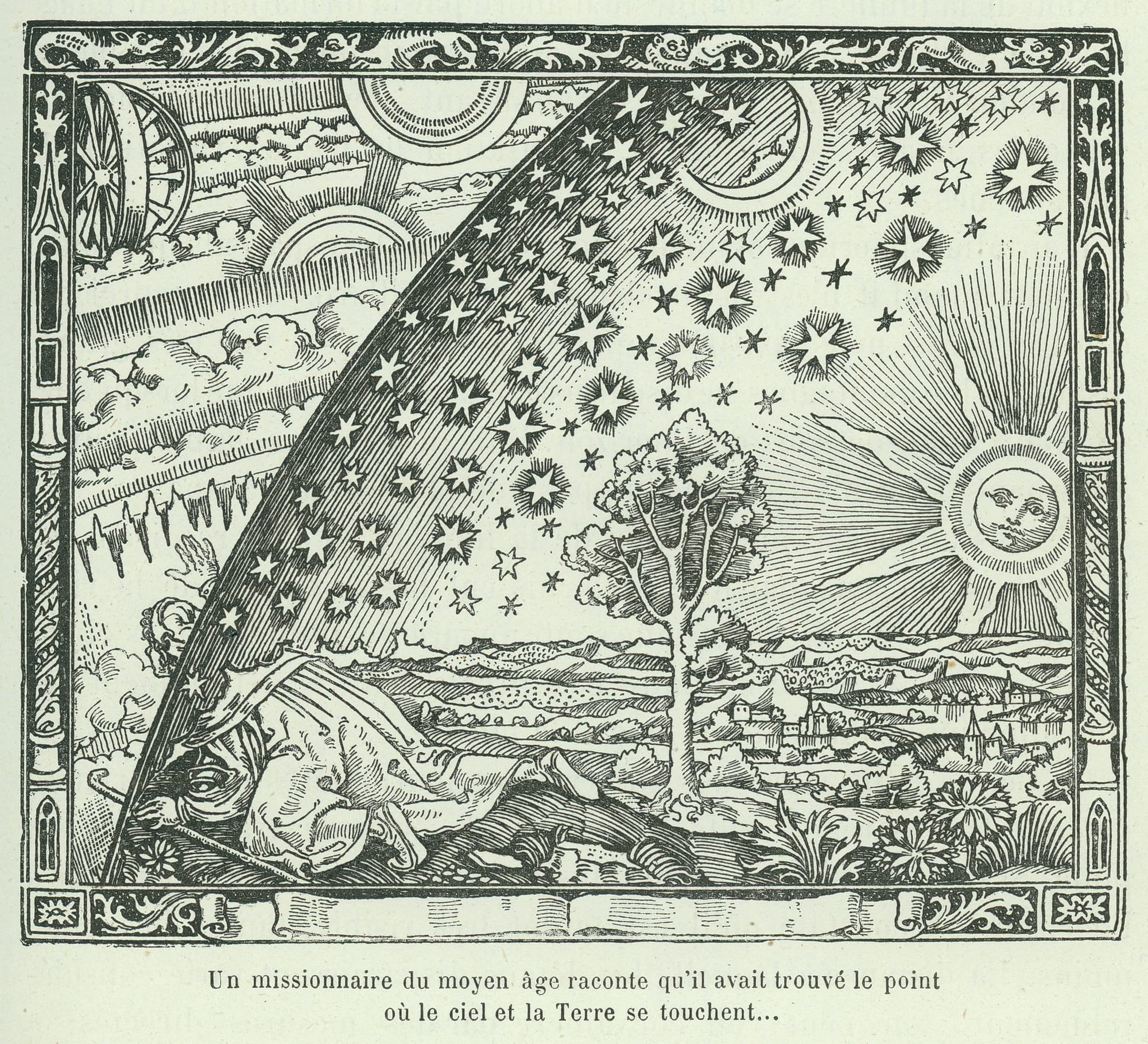In addition to this detailed look at step-work in art history form, the book explores other tools of psychological and physical recovery, such as psychologist Carl Jung’s notions of connection, powerlessness, and the “shadow self”; transformation myths including the hero’s journey; and portals for expanded consciousness like sacred trance, divine ecstasy, and what Massara refers to as "the dark night of the soul." The so-called “Flammarion Engraving” is an unattributed woodcut image of a pilgrim-traveler piercing the veil of the heavens to witness the underlying mechanics of the universe, first appearing in astronomer Camille Flammarion’s 1888 publication L’atmosphère: météorologie populaire (The Atmosphere: Popular Meteorology). This work demonstrates that addiction is not the only characteristic that has plagued humanity since its inception and healing from its devastating effects leverages another natural human tendency: the curiosity to transcend daily reality and glimpse what higher power might govern life as we know it.