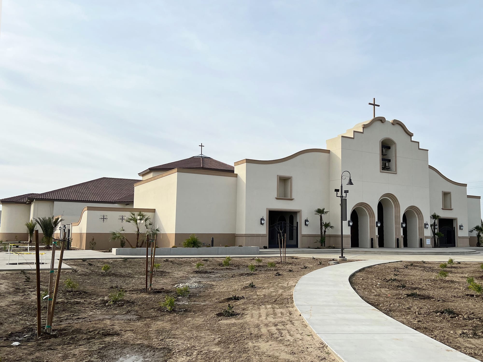 Completed after 11 years of planning and various delays, St. Charles occupies one of the four corners of a busy intersection of West Caldwell and Akers Street. Three other churches — Visalia First Church, Jehovah’s Witnesses, and Visalia United Methodist Church — rest on the remaining three corners. Featuring Mission Revival architecture, arched entryways, and a curvy Neo-Baroque facade, its scale and architectural ambition distinguish St. Charles from its more conventional neighbors.