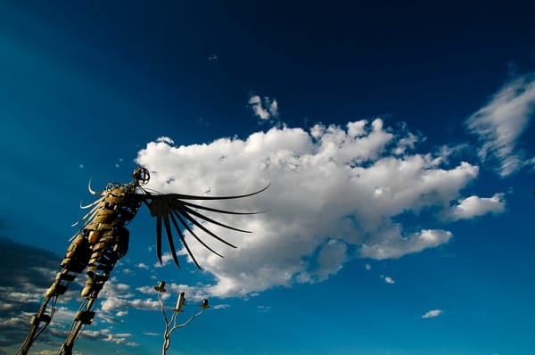 Aside from the remoteness of the location and the difficulty and expense of getting there, however, the tribal nature of the event may have something to do with the why the art of Burning Man isn’t better known among the wider art-appreciating public. As a friend of mine who’s a ten-year Burning Man veteran explained to me, many regular attendees tend to divide the population at large into “Burners” and “everyone else”, and there’s some sense that if you don’t commit to being there, the art isn’t for you anyway. (Then again, I’ve heard the same thing said about the Venice Biennale.)