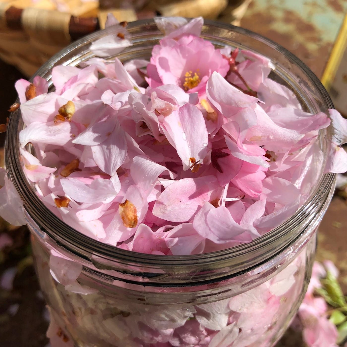 If he would answer my calls, I’d tell my friend in Detroit how we grew annoyed with the perfume that filled the teaching kitchen. I would list the various, tiresome ways we’ve consumed the eau-de-vie and pickled flowers: in cocktails, cakes, savory warm riceballs, sweet mochi, vinaigrette, and anywhere you might use a caper or a splash of bright pink.