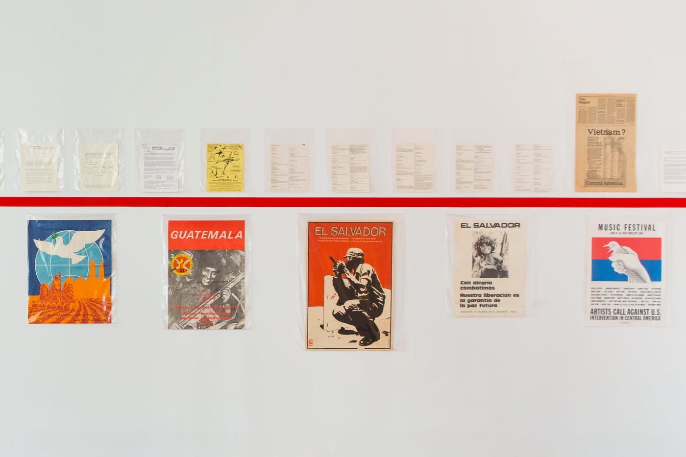 In a remarkable leap from the local to the international, curator de la Barra also includes the work of Group Material as well as Susan Meiselas’s documentary photographs to show the repercussions of the Nicaraguan upheaval in the United States. The artists’ collective Group Material, established in 1979 by the artists, Doug Ashford, Julie Ault, Mundy McLaughlin, and Tim Rollins, who used strategies derived from conceptual art to produce a series of critical exhibitions conceived as artworks in and of themselves, exhibitions which focused on the politics of information and the institutional structures that publicly disseminated information. Active until 1996, the group championed collaborative exhibitions mounted in alternative spaces and community engagement activities that addressed subjects such as housing and AIDS. One of the most memorable exhibitions organized by Group Material was Timeline: A Chronicle of U.S. Intervention in Central and Latin America, held at PS1 in 1984 as part of a nationwide campaign titled Artists’ Call Against U.S. Intervention in Central America which produced a considerable program of cultural actions. Dream of Solentiname stages a smaller version of the 1984 show, including a display of the original printed matter from the exhibition, as well as a slideshow documenting the installation at PS1.