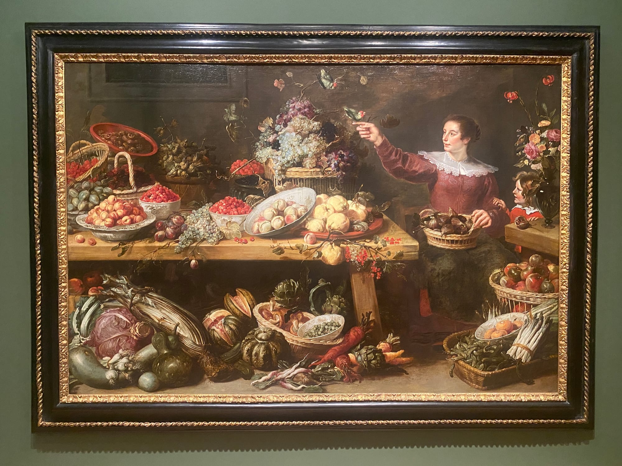 “Still Life with Fruit and Vegetables” appears in All Consuming: Art and the Essence of Food, on view at the Norton Simon Museum. The show is a journey through food as imagined and depicted by European artists from 1500 to 1900, all pulled from the museum’s collections. With themes like Hunger, Excess, and Sustenance, the exhibition delves into the structural inequalities exacerbated by shifts in food culture and production during this time. “Europeans dealt with famine,” notes the exhibition text, “revolutionized their agricultural methods and imported goods from non-European countries and colonized lands.”