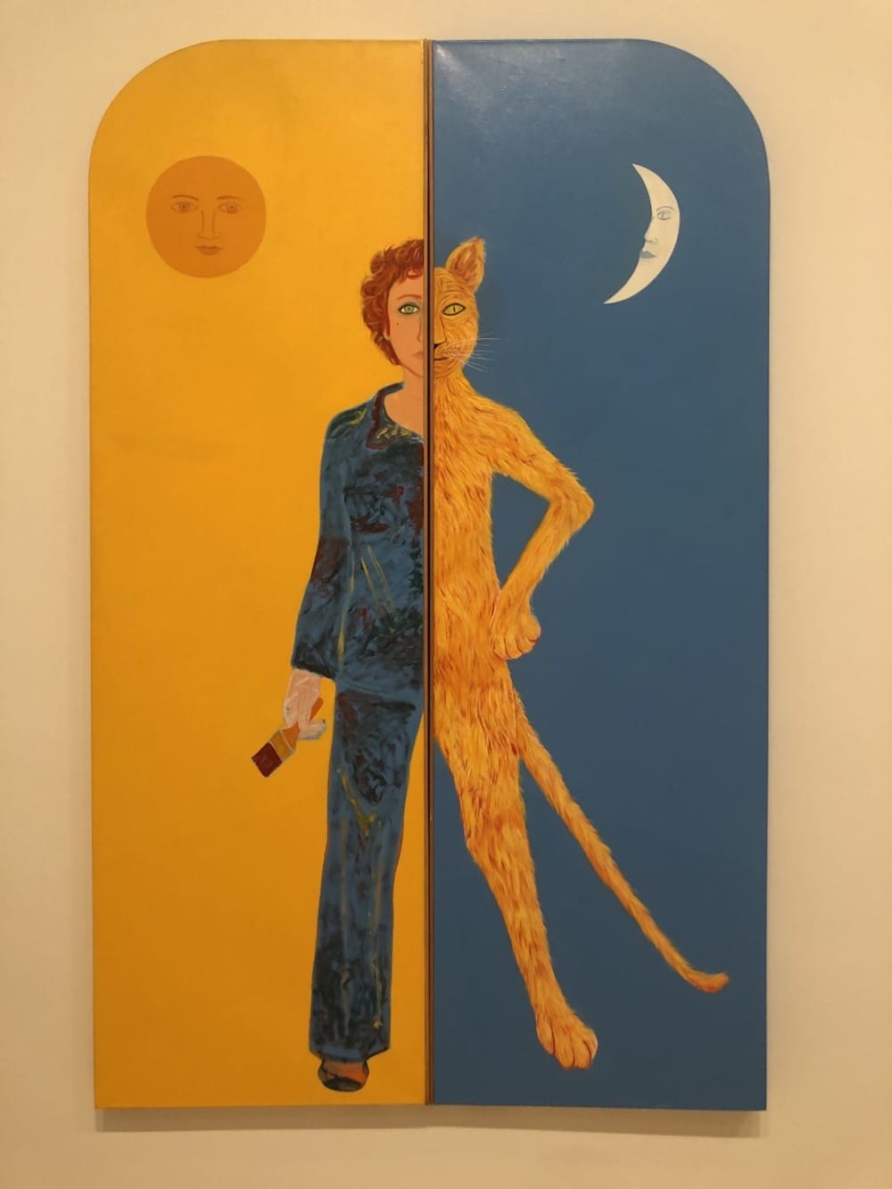 SAN FRANCISCO — Full disclosure right at the top: I found writing this review of Joan Brown at the San Francisco Museum of Modern Art more than a little challenging. I don’t know that I’ve ever felt so torn about an artist’s work, particularly after a retrospective — Brown’s first in more than two decades — that in this case includes some 80 pieces, including a handful of witty sculptures, but mostly paintings, many of them monumental, most of them colorful and hella fun. Which is to say that I enjoyed, and admired, a lot about Joan Brown. But even after revisiting the show to check my reactions and my notes, and after reading the smart and thorough essays in the excellent exhibition catalogue (no hesitation on that count), I remain very much of two minds. Was Brown a protean powerhouse bravely willing to buck the art world status quo at any expense to her own reputation? Or was she an artist who too easily embraced ideas and influences with the same restless energy with which she took up endurance swimming, spiritual practices, and spouses?