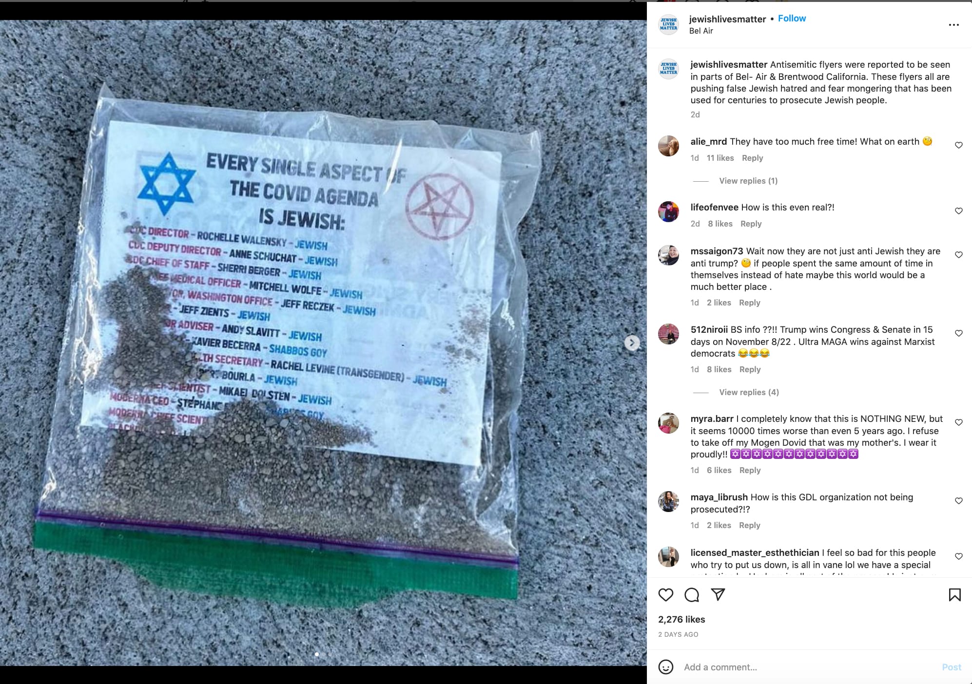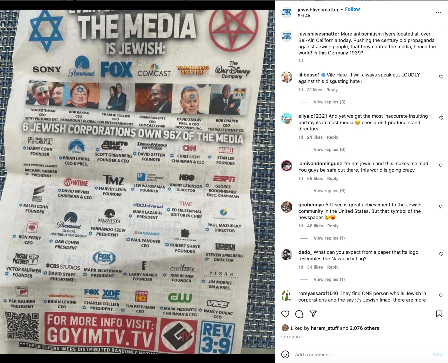 It’s clear that Ye’s words have ignited antisemitic behavior in Los Angeles and probably beyond. A number of people from the antisemitic hate group known as Goyim Defense League took to Interstate 405 to suspend banners emblazoned with “Kanye Was Right About the Jews” and “Honk if you know.” LA residents have also seen an influx of neo-Nazi-aligned leaflets on doorsteps as well as antisemitic hate speech plastered on billboards.
