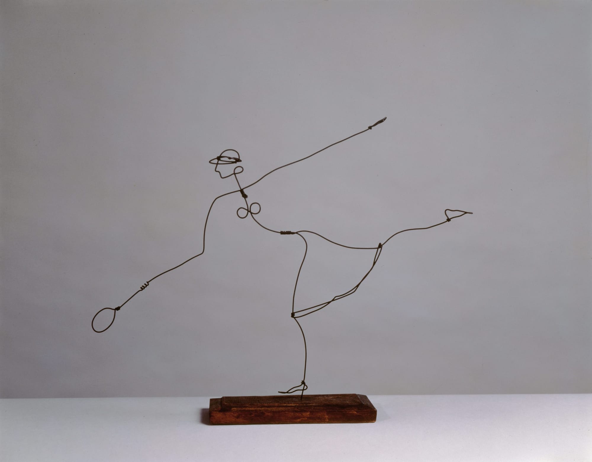 Artists pick up on split-second marvels of movement — Alexander Calder, in a wire sculpture of wonderful economy, shows us the tennis star Helen Wills in 1927, lunging forward and down to parry a shot, leg flung back out, all poise and nerve. In “The Liffey Swim” (1923), Jack B. Yeats, that flickery expressionist and Olympic medalist, captures the excitement of the crowd leaning over the River Liffey in Dublin, cheering on the swimmers competing in the annual race.