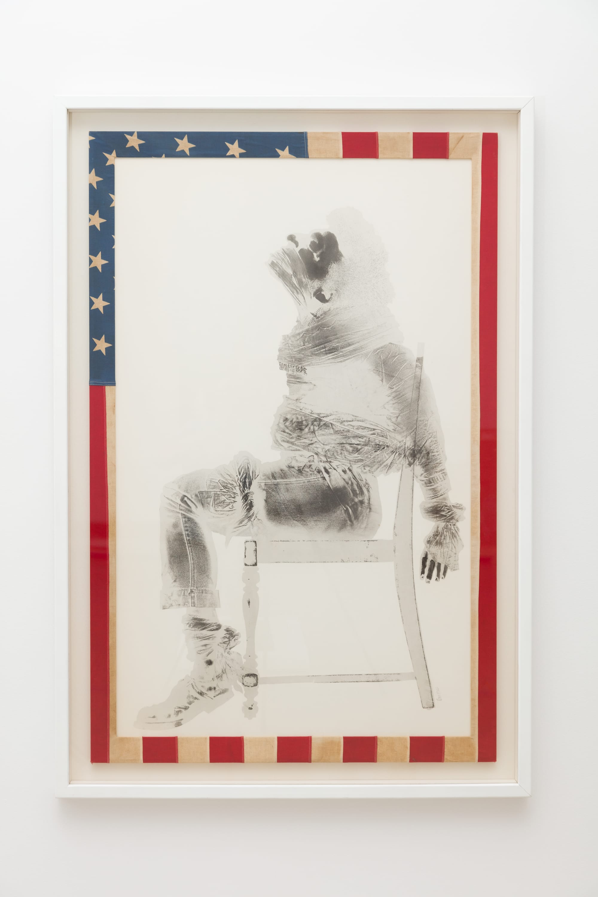 Figurative art abounds throughout Soul of a Nation, and among the more searing images is David Hammons’s “Injustice Case” (1971), one of his body prints, a group of works given ample space in this exhibition. The print shows a man bound to a chair, gagged with hands tied behind his back, head tilted up in a gesture of pain, the entire image framed by the American flag. This work marks a judge’s order to bind and gag Bobby Seale, co-founder of the Black Panthers, during his 1969 trial as part of the Chicago Eight. Sandra Bland’s ghost hovers around “Injustice Case,” as do the spirits of Eric Garner and all the others who have died at the hands of our criminal justice system, a system that seems more criminal than just. There is scarcely a work in the entire exhibition that does not demonstrate how deeply we are struggling with the same issues that concerned Black artists a half-century ago.
