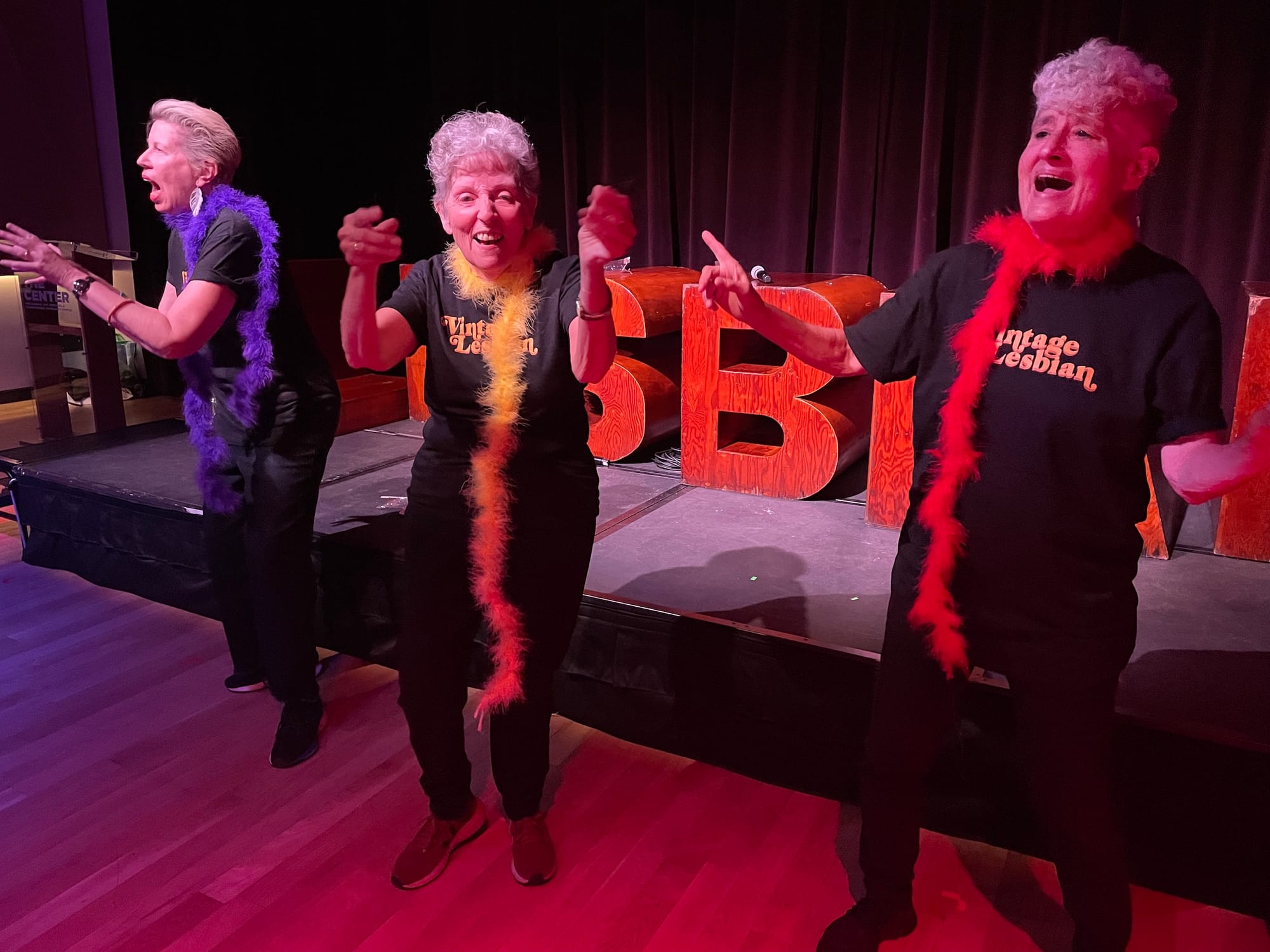 This week, 75-year-old artist and scholar Kay Turner will take the stage at Brooklyn's Branded Saloon with her feminist-lesbian punk band Kay Turn Her and the Pages in a "gray gay pride" celebration. Throughout the decades, Turner and her bandmates have donned and distributed merch including pins that read "More Madonna, Less Jesus" (one of her original songs) and t-shirts with the phrase "vintage lesbian."