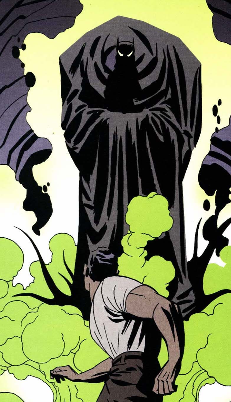 Darwyn Cooke left a lasting impact on comics with his incredible style, an enticing retro-futurist throwback to ’50s “Silver Age” design sensibility marked by dynamic action and square-jawed characters. In the late ’90s, he broke into the industry as a storyboard artist on The New Batman Adventures with pitch pages that would eventually be published as the short story Batman: Ego. In it, Cooke explores a monumental Art Deco Gotham City before delving into the nightmarish depths of Bruce Wayne’s troubled mind in bold, blocky colors. Bruce is psychologically tormented by a monstrous, separate Batman figure, who confronts him with his failure to save a man’s life. In the same way that Mazzucchelli looked to naturalism as a contrast to the melodrama of superhero fare in his time, Cooke counteracted the busy detail of ’90s comics with more straightforward visuals. The classical silhouettes that defined his magnum opus The New Frontier were not just empty nostalgia, but a way to explore what these characters mean to different generations, as they often lose the fight to changing times. Ego might be the most confrontational version of this tendency, directly challenging the ethical framework of Batman’s mission — his no-killing rule, his collaboration with the police — through Cooke’s gorgeous art, classical yet forward-thinking.